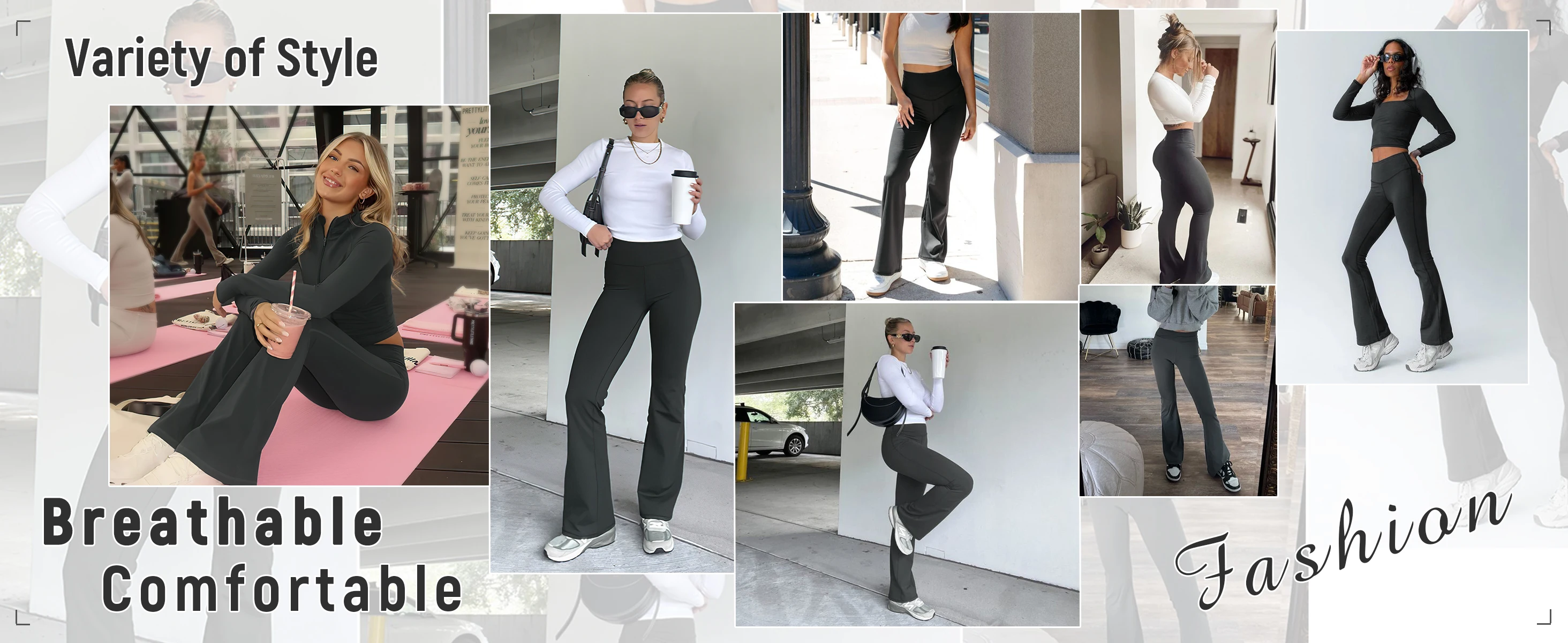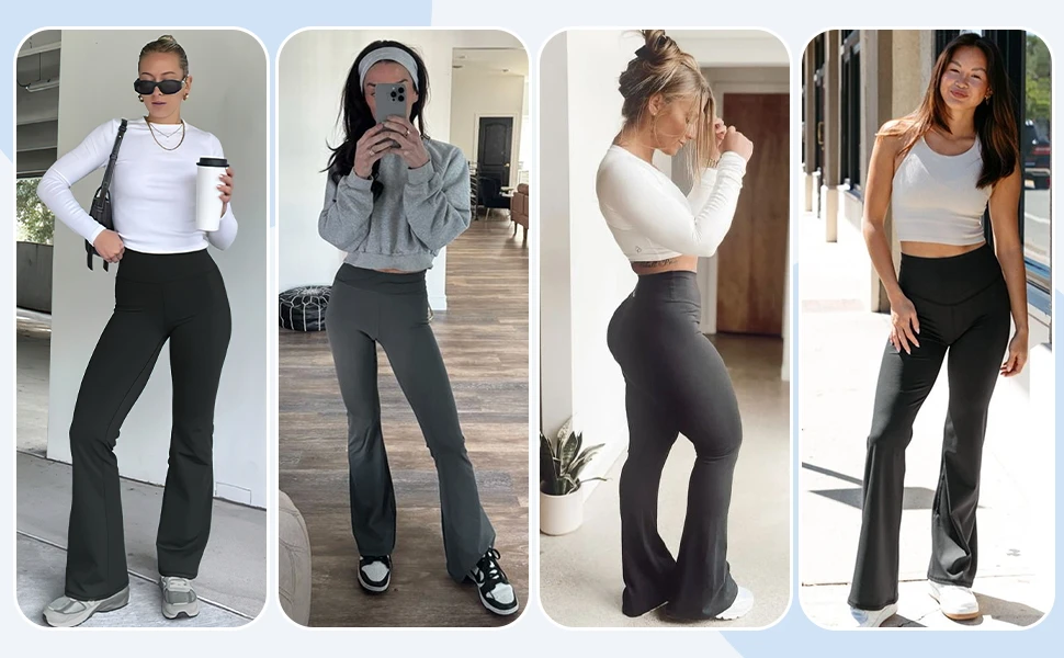 Women's High Waisted Flared Yoga Pants with Pockets Tummy Control Bootcut Leggings for Gym Fitness Casual Wear