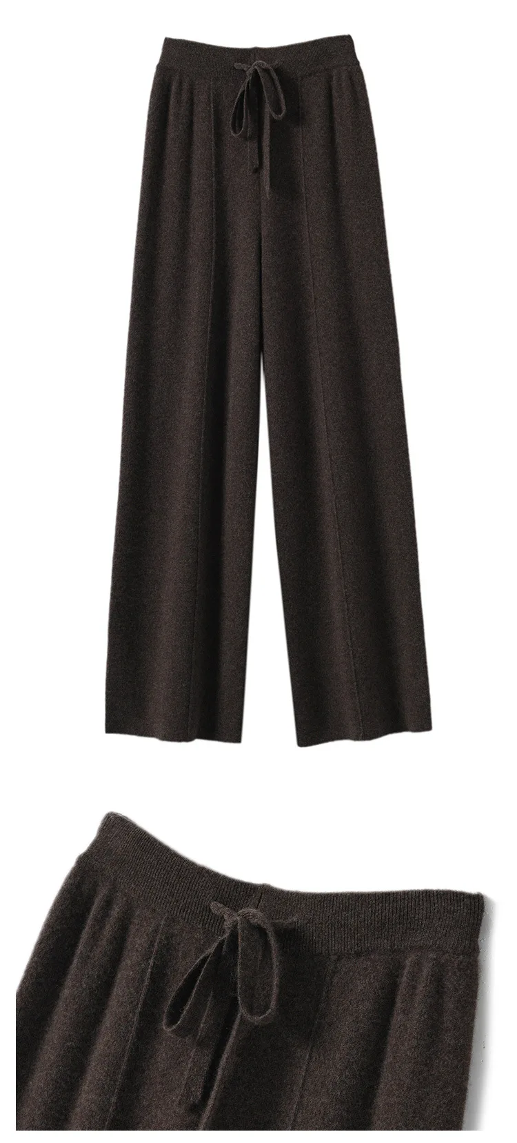 Women's High waisted warm knit wide leg straight leg pants for women, solid color loose wide leg pants