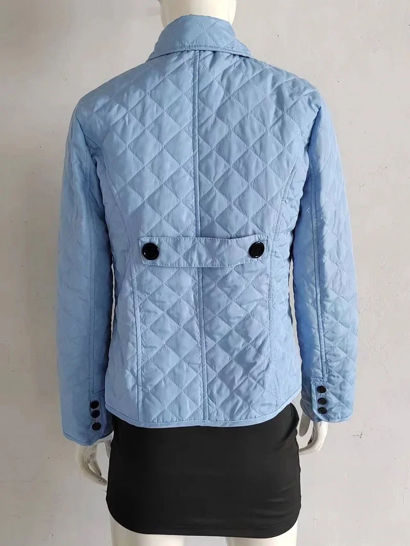 Women's Lightweight Quilted Jackets Autumn Winter Black Khaki Long Sleeve Button Down Casual Outwear Padded Coat with Pockets