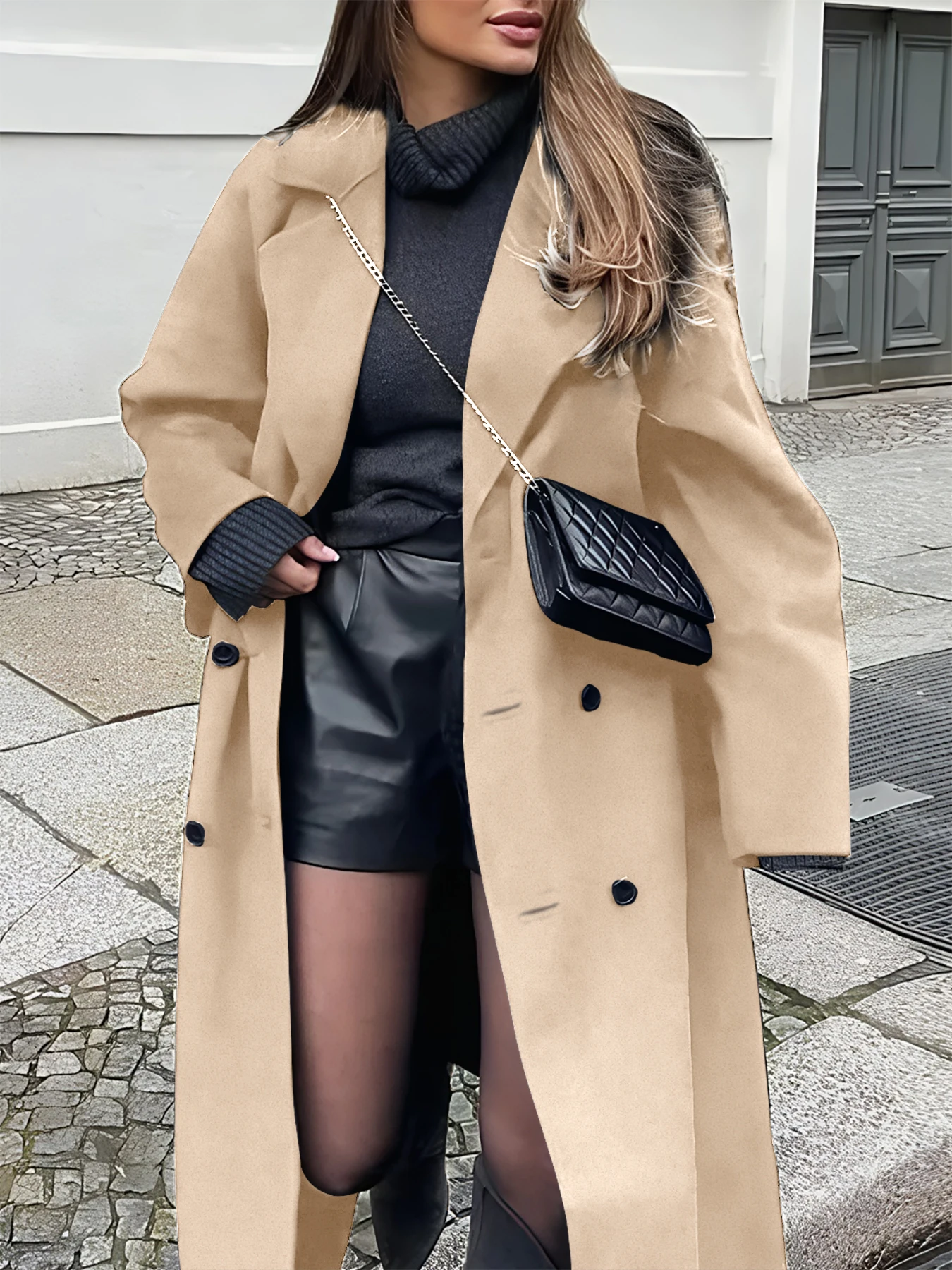 Women's Long Woolen Coat, Casual Loose-Fitting Overcoat with Double Button Front, Fall & Winter Fashion Outerwear for Women