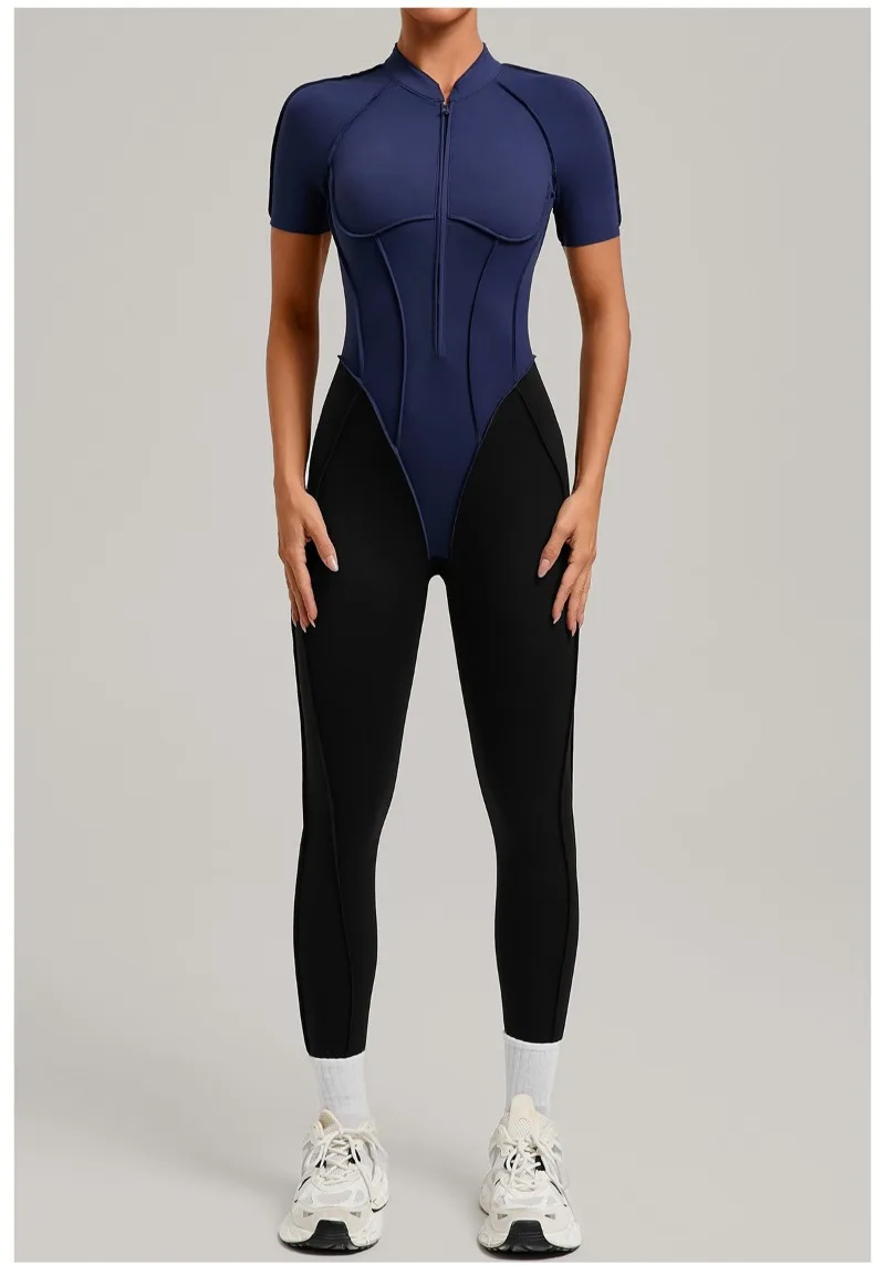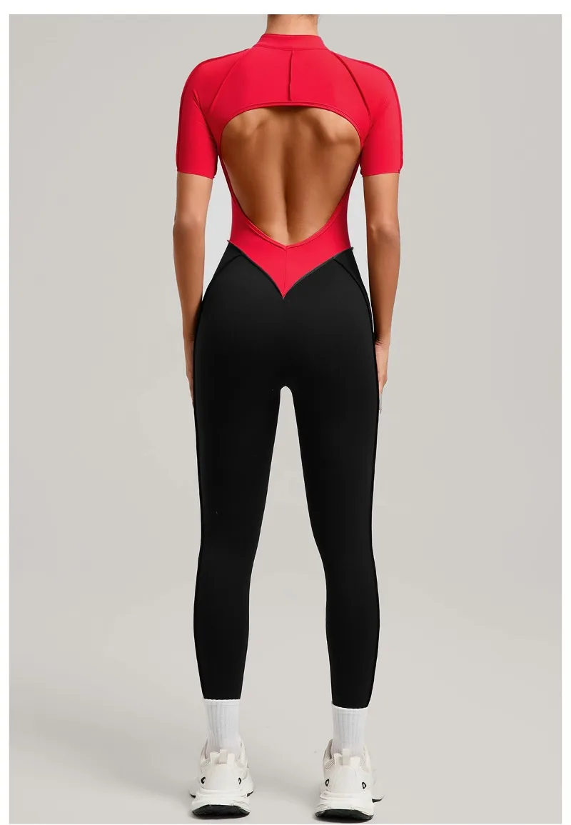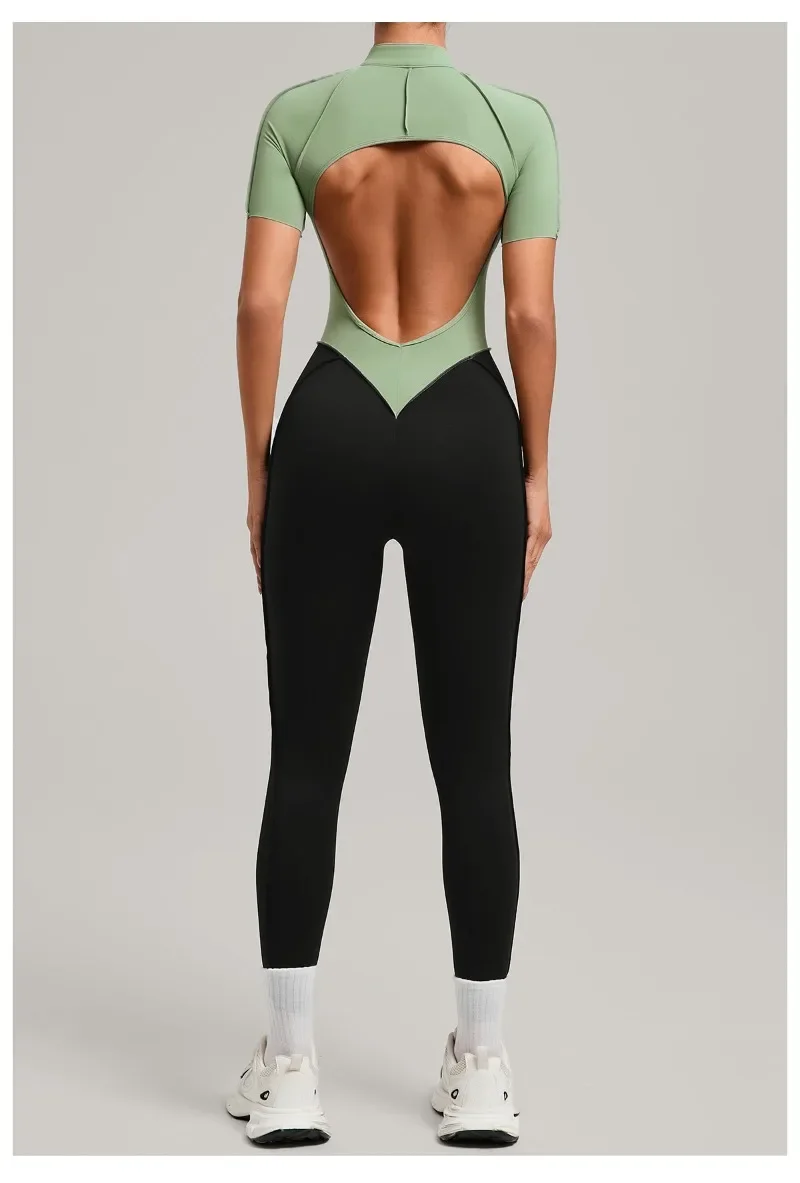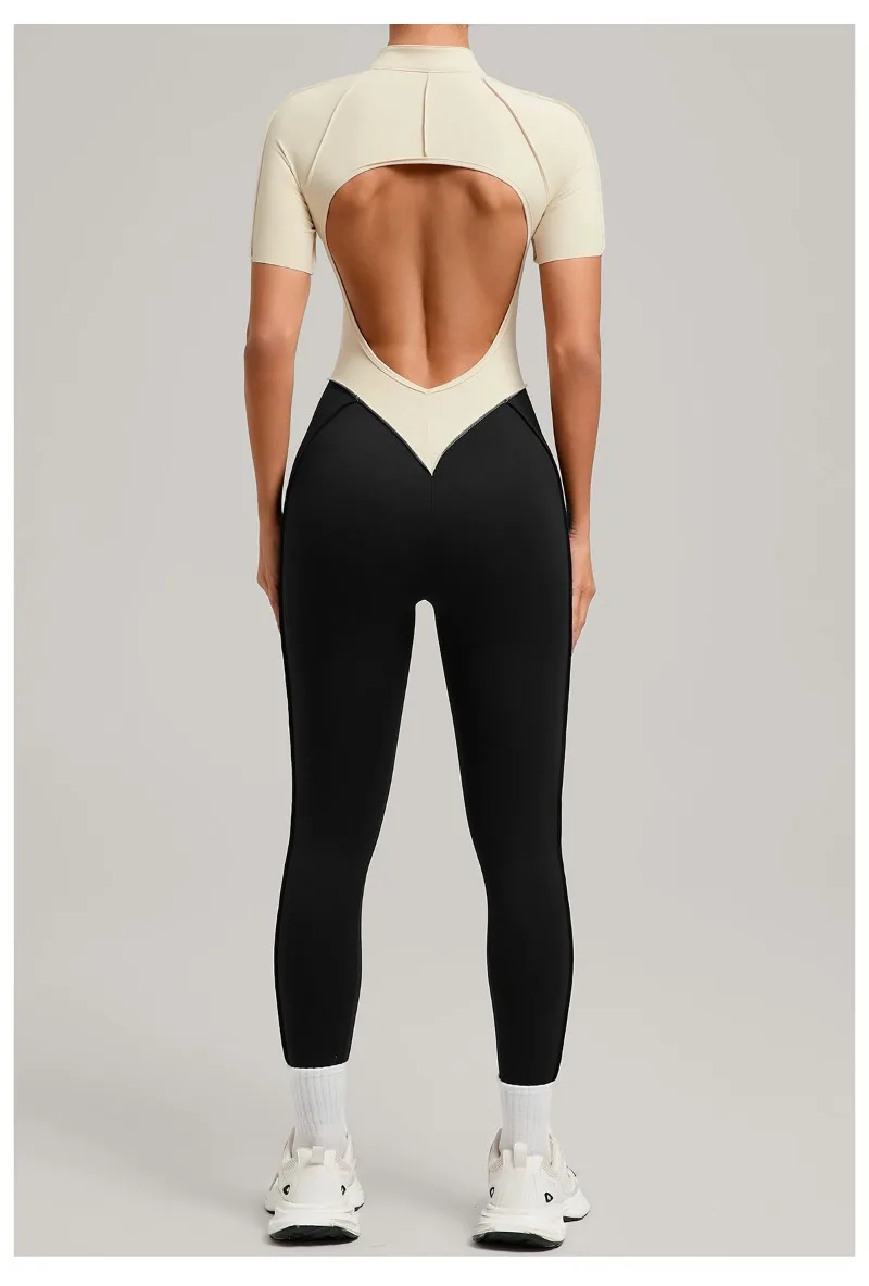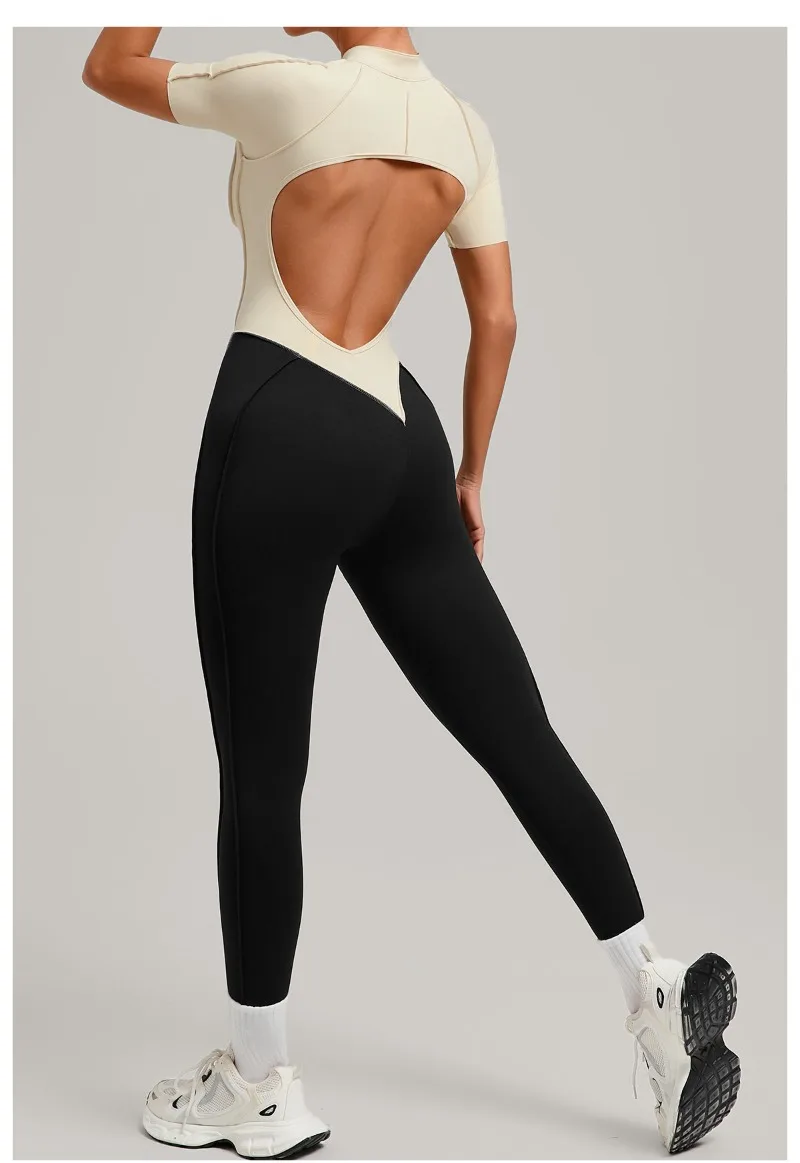 Women's New Yoga Jumpsuits with Contrasting Splicing Beauty Back Slim Fit One-piece Workout Gym Outdoor Sports Fitness Bodysuits