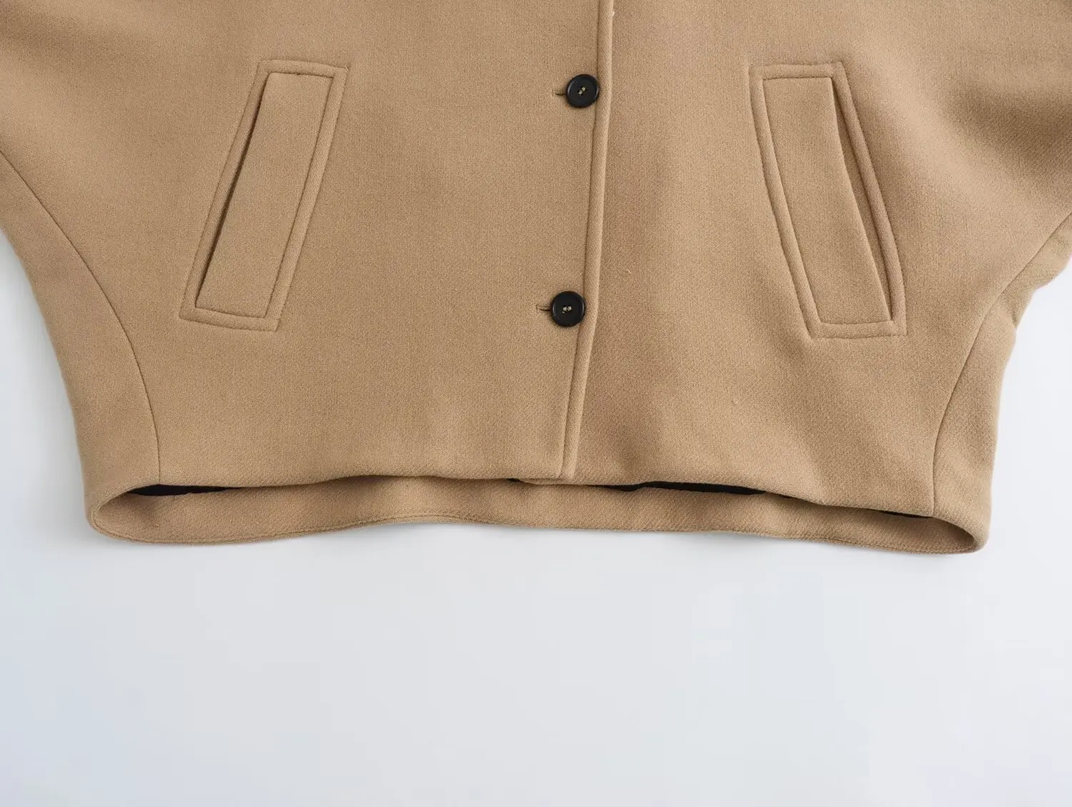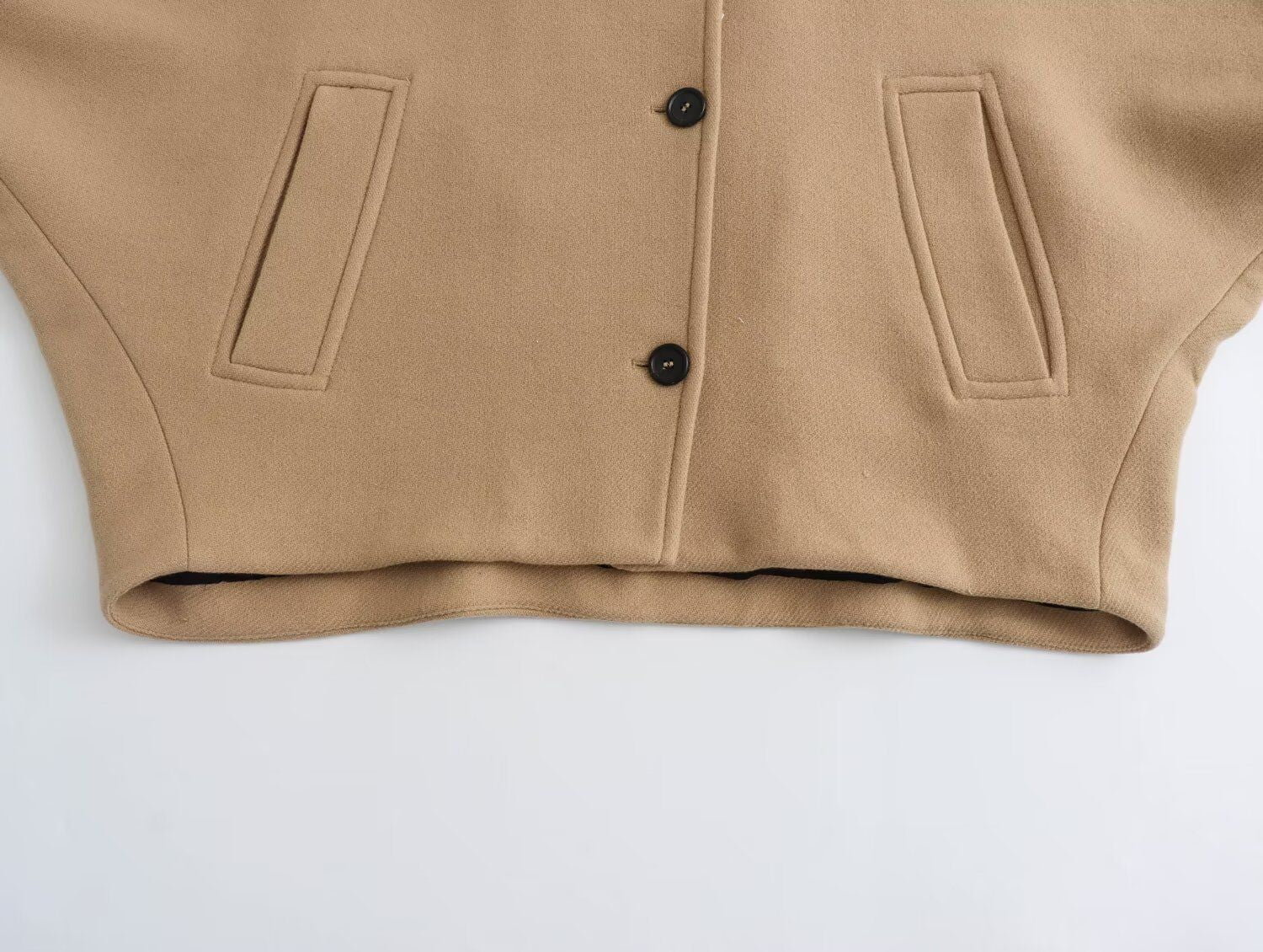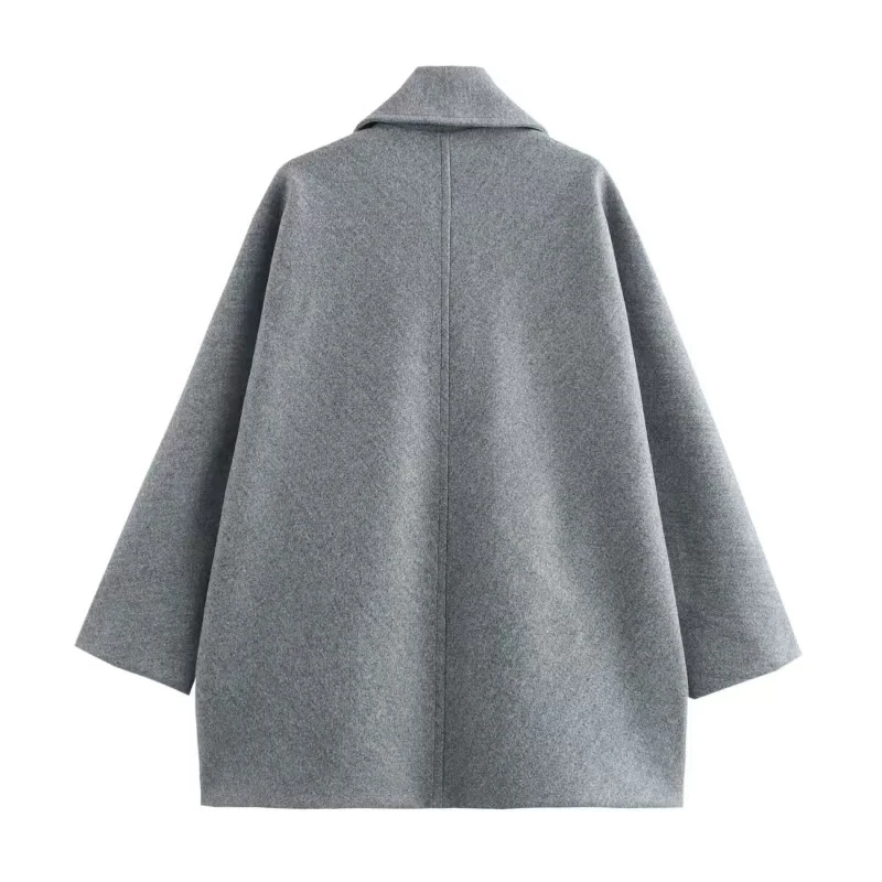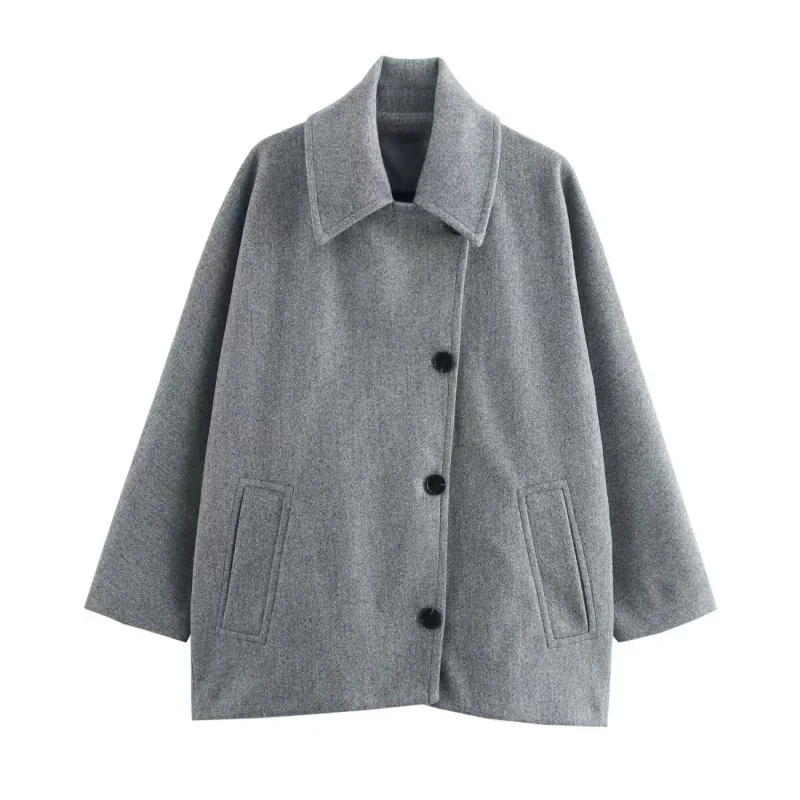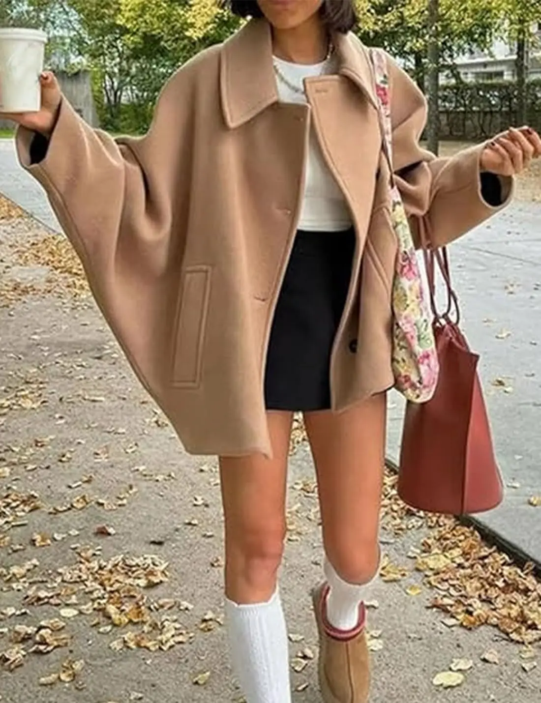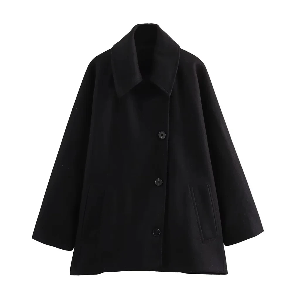 Women's Oblique Button Loose Batwing Sleeve Jacket Coat Lapel Double Pocket Warm Solid Vintage Outerwear Fall Winter Coat