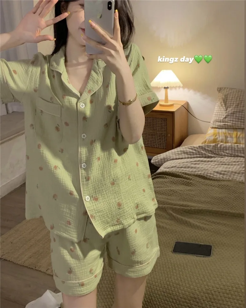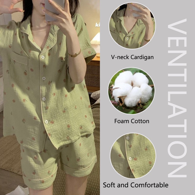 Women's Pajamas Set Foam Cotton Sleepwear Button down Tops and Shorts Pajama 2 Piece Suit Femme Nightwear Loungewear for Summer