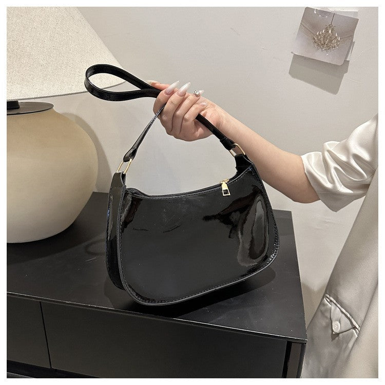 Women's Patent Leather Handbag Versatile Fashion Shoulder Casual Commuting Bags Girl Brand Designer Zipper Handbag Korean 2025