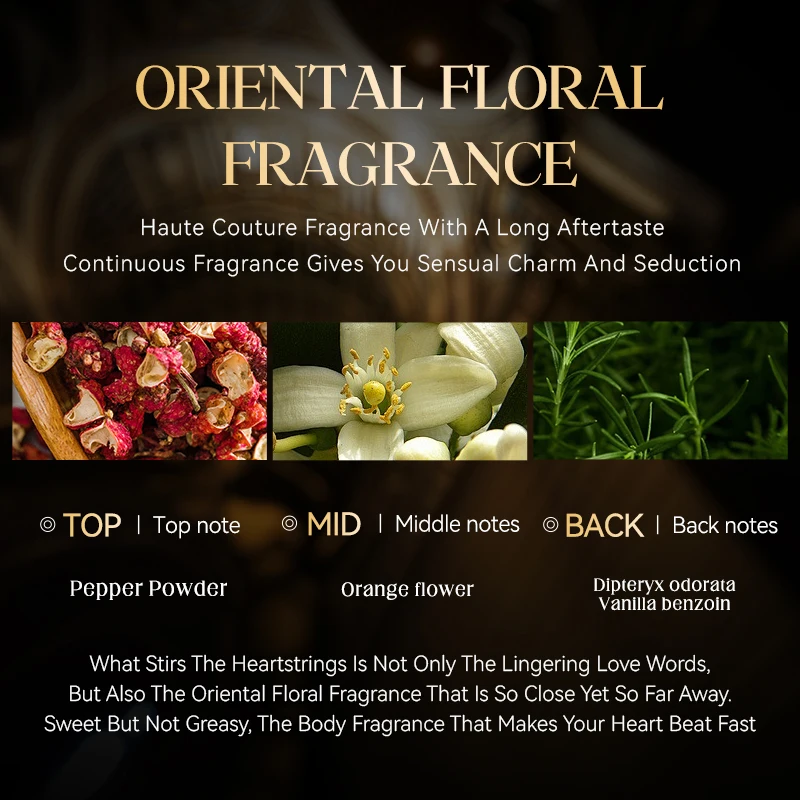 Distinct and bold oriental floral scent with spicy and sweet undertones.