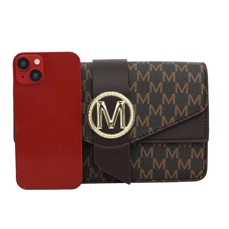 Women's retro shoulder bag, simple small square bag with printed lettering, stylish crossbody bag