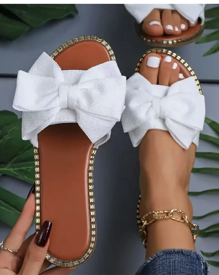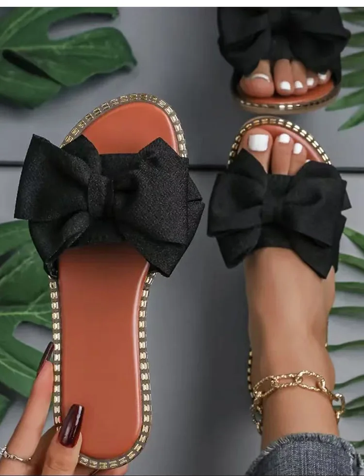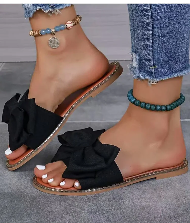 Women's Sandals Sweet Bow Summer Shoes Women Flat Sandals Inddor Outdoor Slippers Women 2025 New Sandals Summer Footwear Female