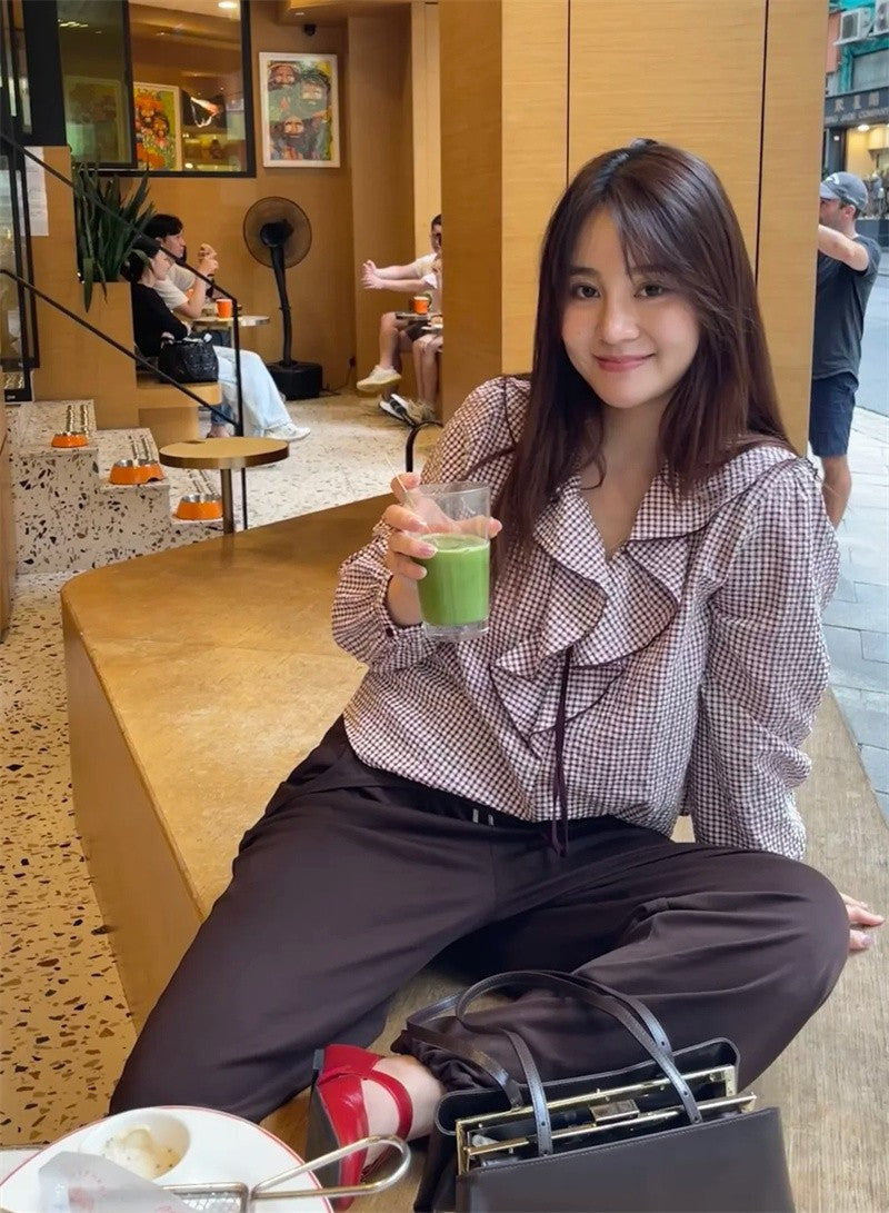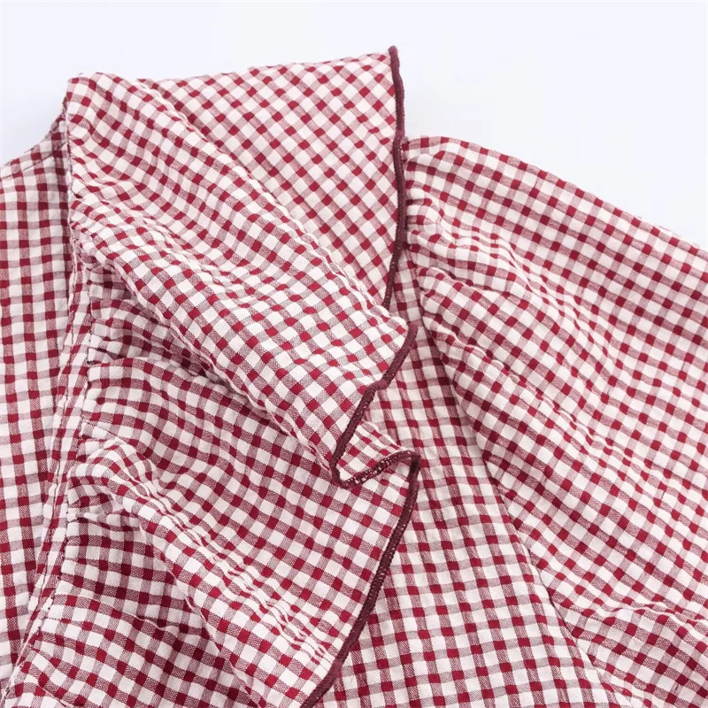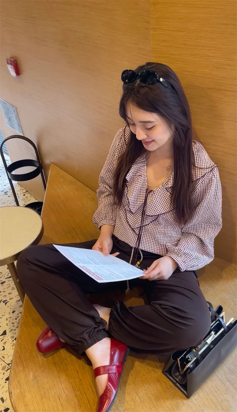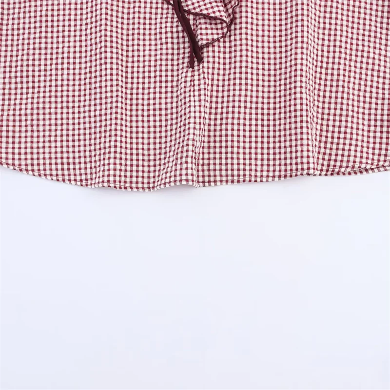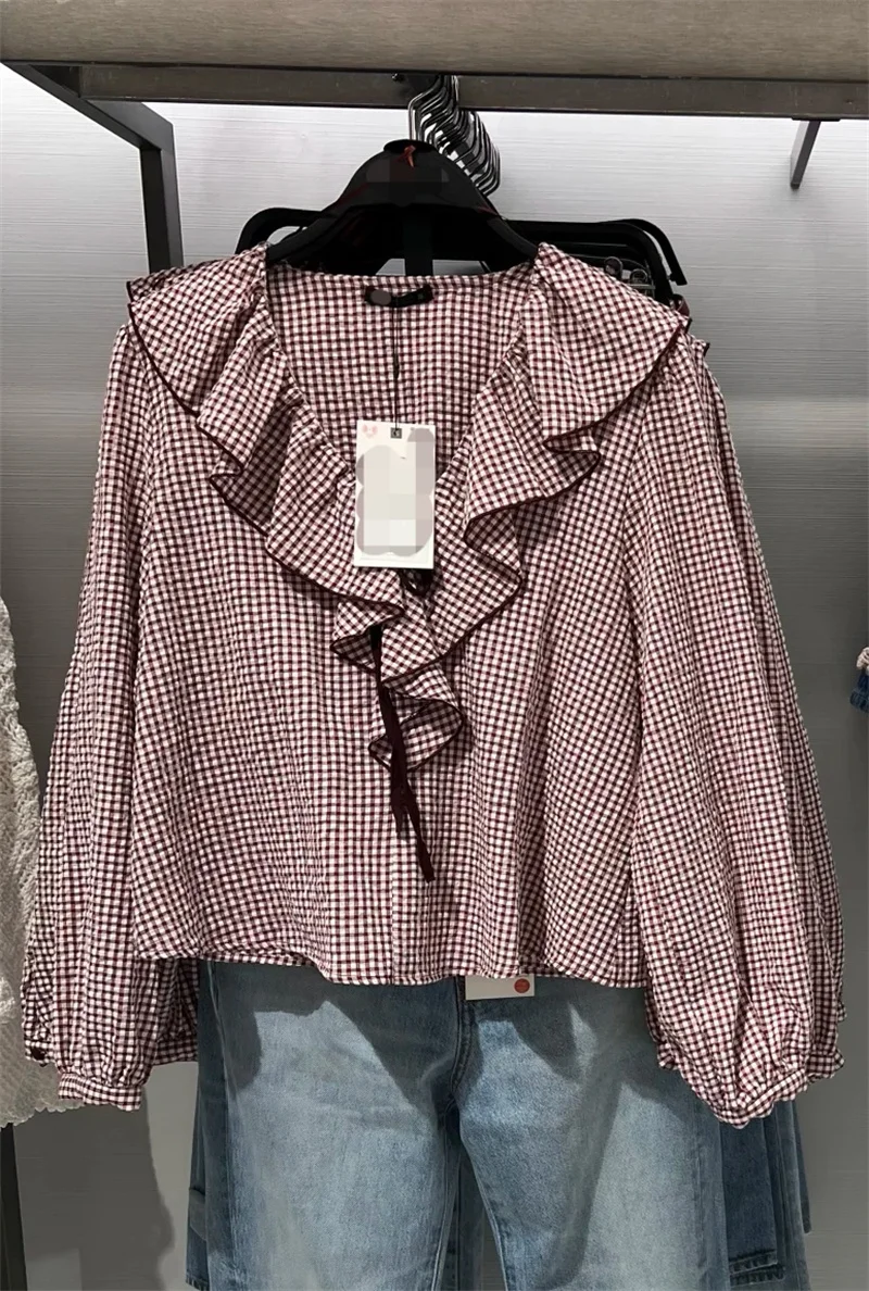Women's Shirt Fall 2025 New Red Check Long Sleeve Stacked Decoration Pastoral Collegiate Shirt Casual Fashion Lively Personality