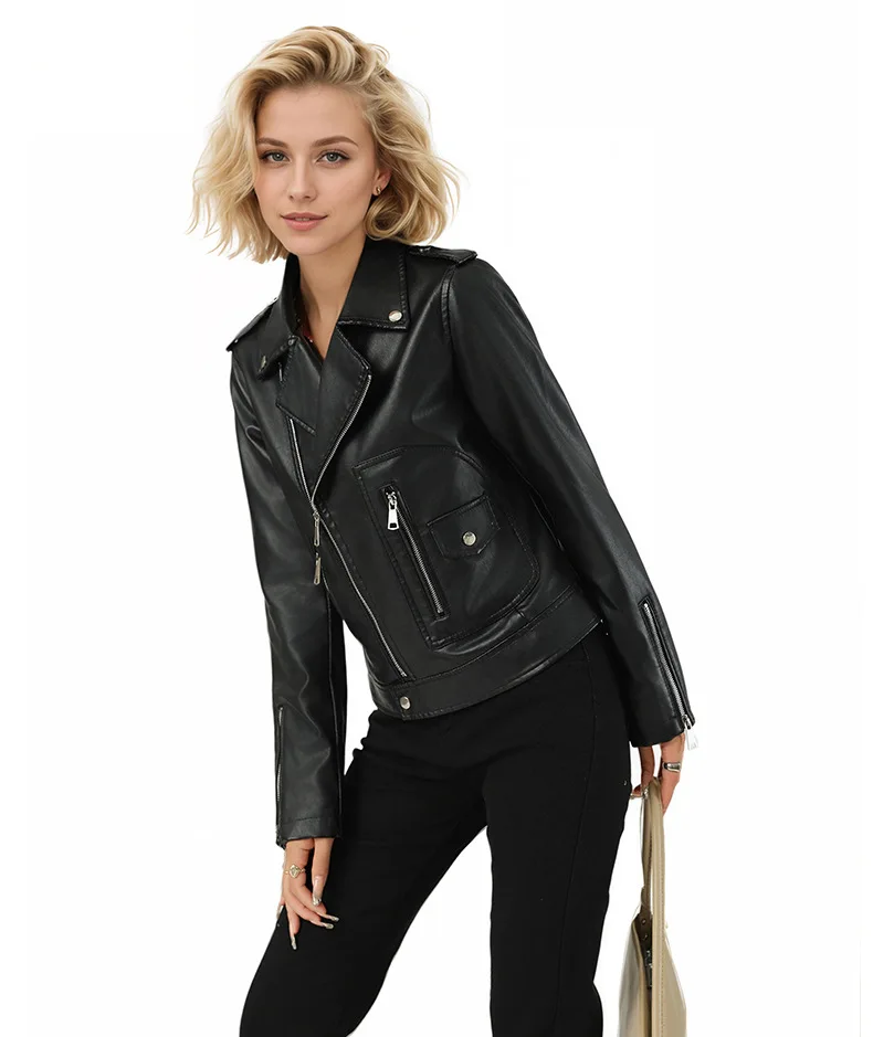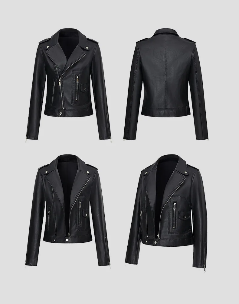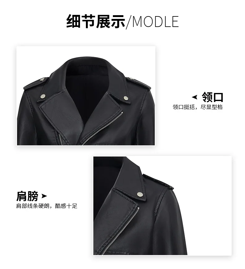 Women's Short-Length Black Leather Jacket for Fall, Fashionable Casual PU Jackets, Sizes: S M L XL.