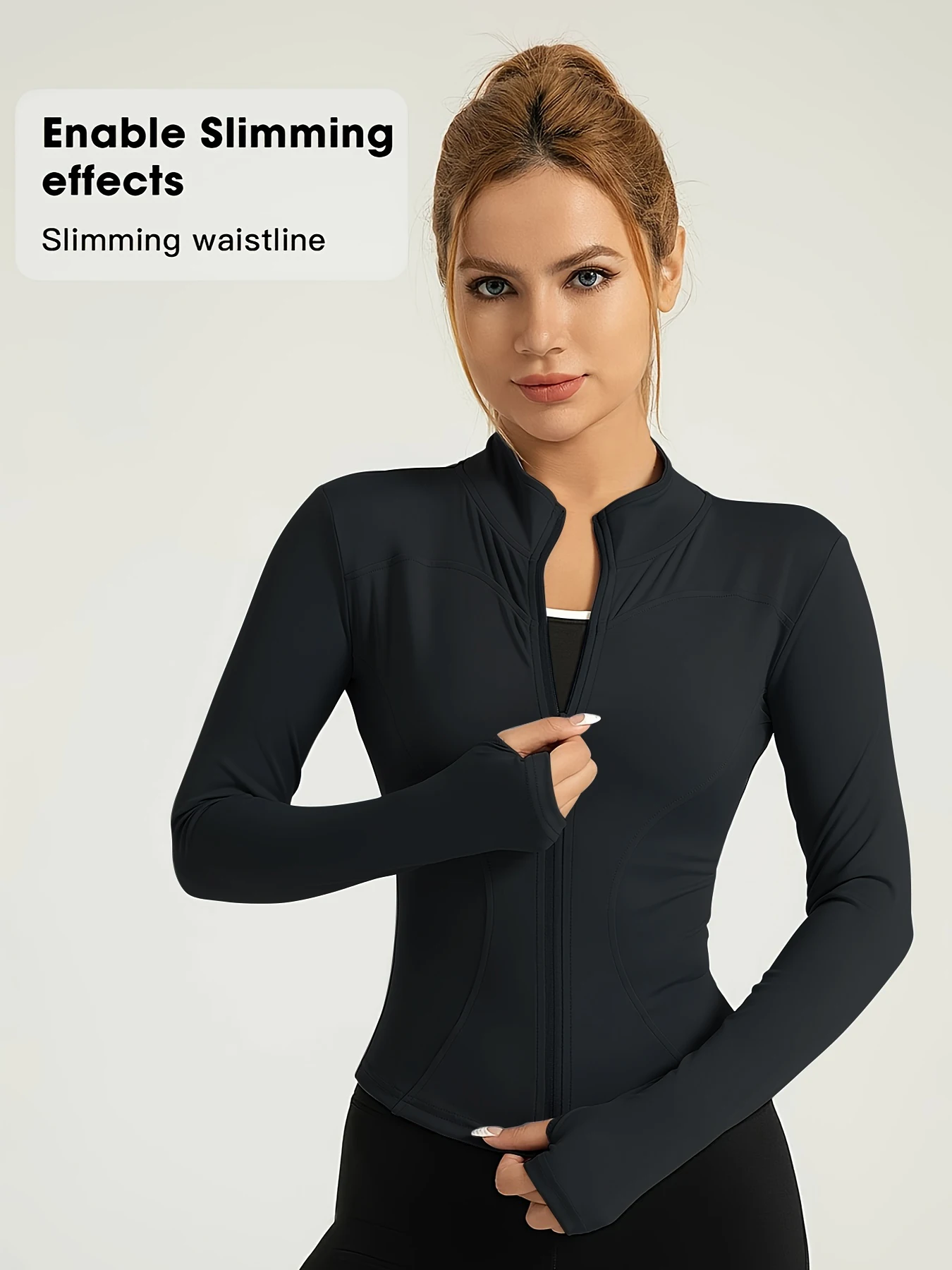 The slim fit design of this yoga jacket accentuates your figure, providing a flattering silhouette for any workout.