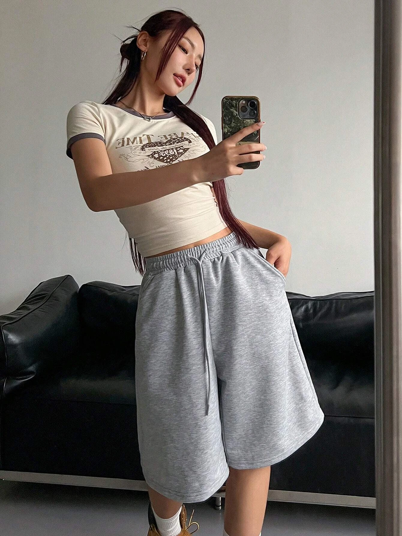 Women's solid color casual elastic drawstring shorts suitable for daily wear all seasons sports fashion