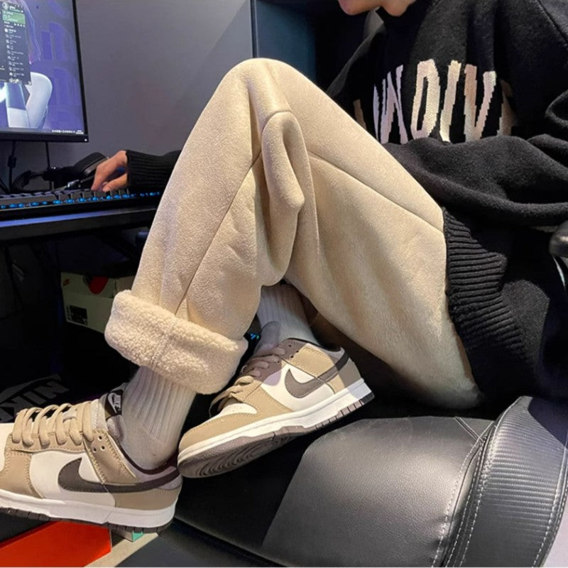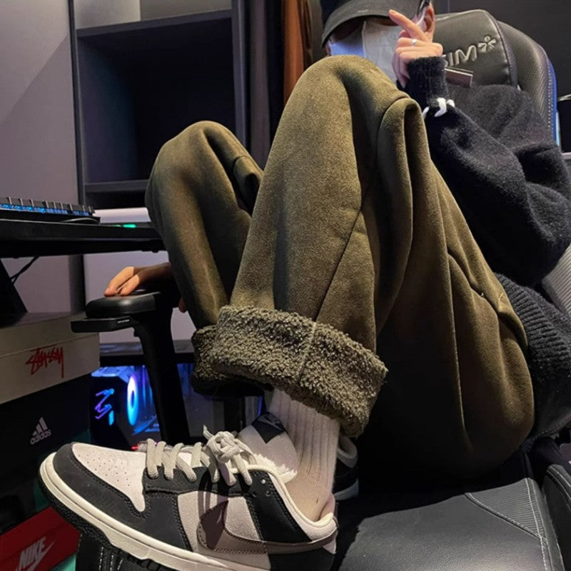 Women's Suede Thickened Straight Leg Pants Korean Style Wide Leg Autumn Winter New Student Fashion Casual Trousers