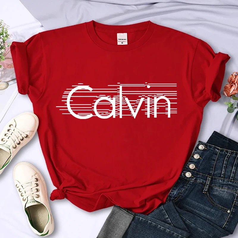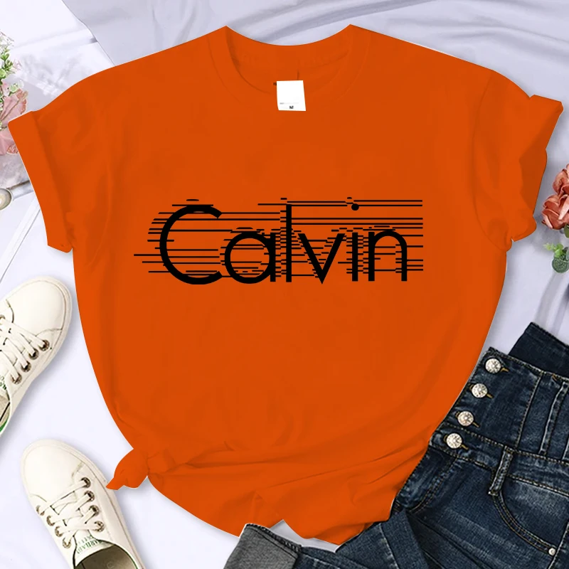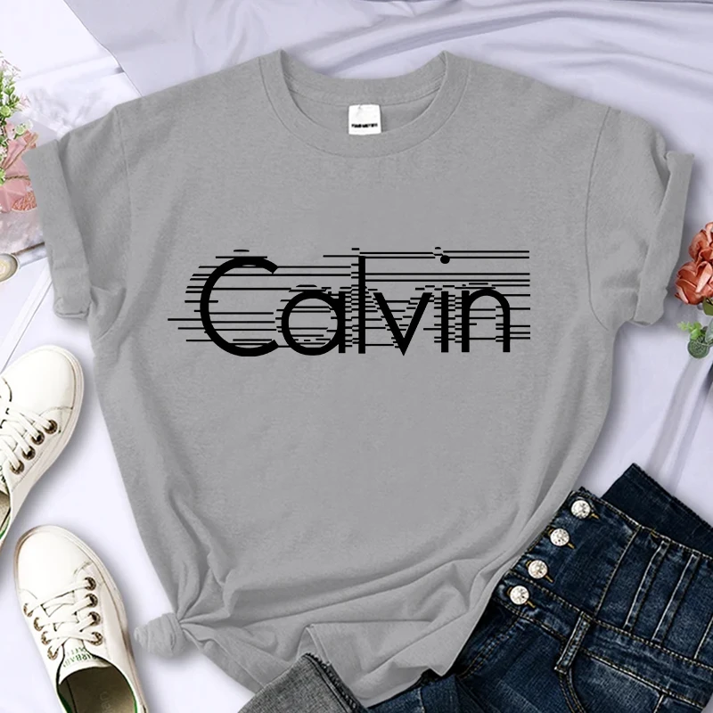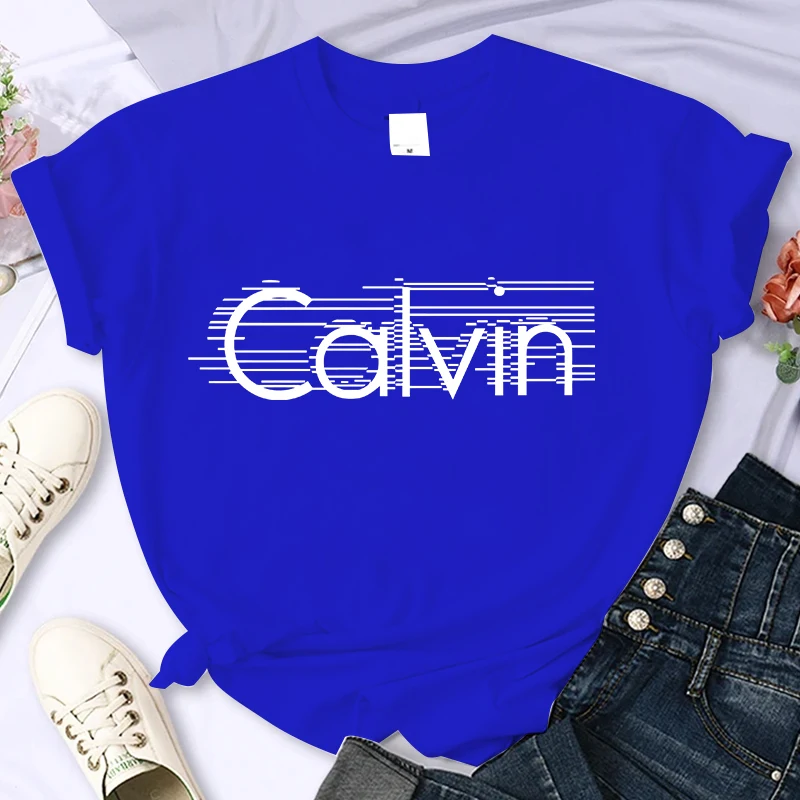 Women's summer 100% pure cotton fashionable casual loose Calvin letter pattern printed round neck short sleeved T-shirt top