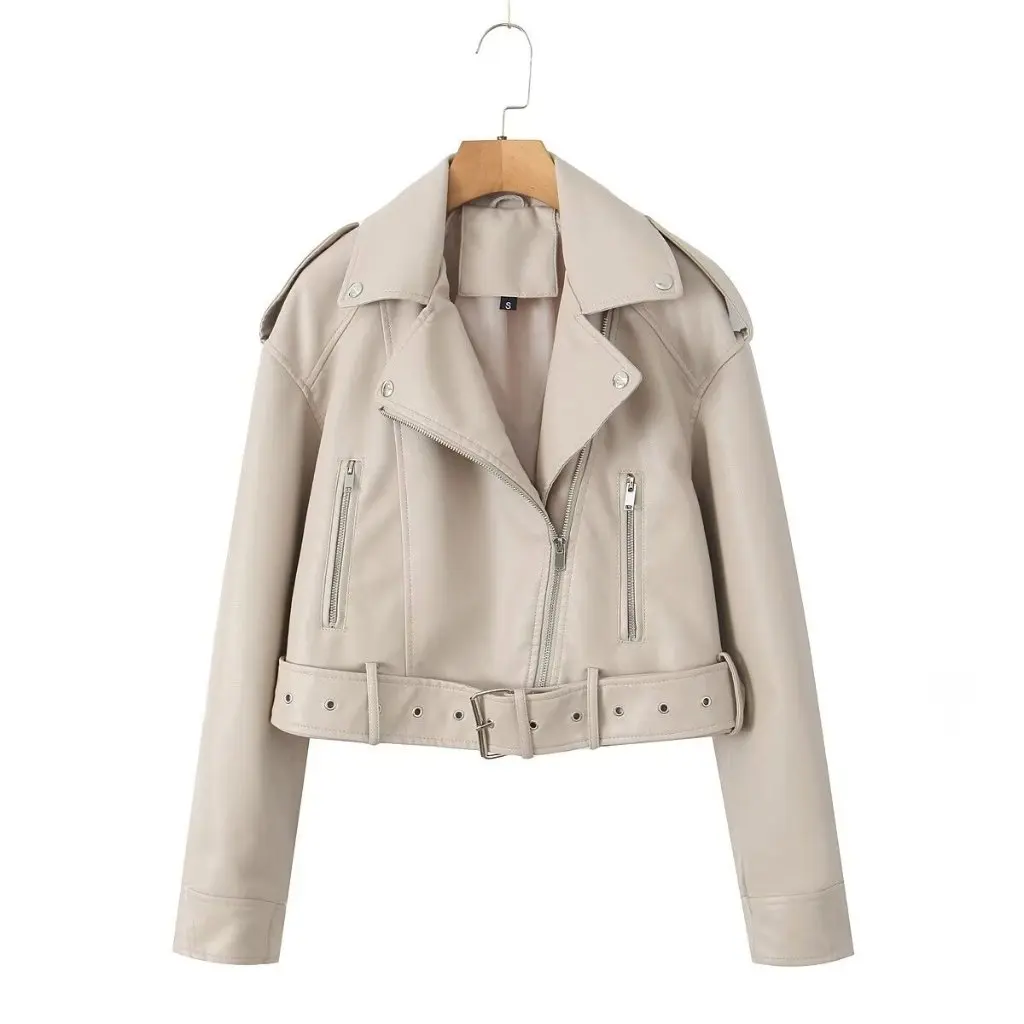 Women's Trendy Motorcycle Leather Jacket Coat European American Style Wholesale Distressed Design for Autumn