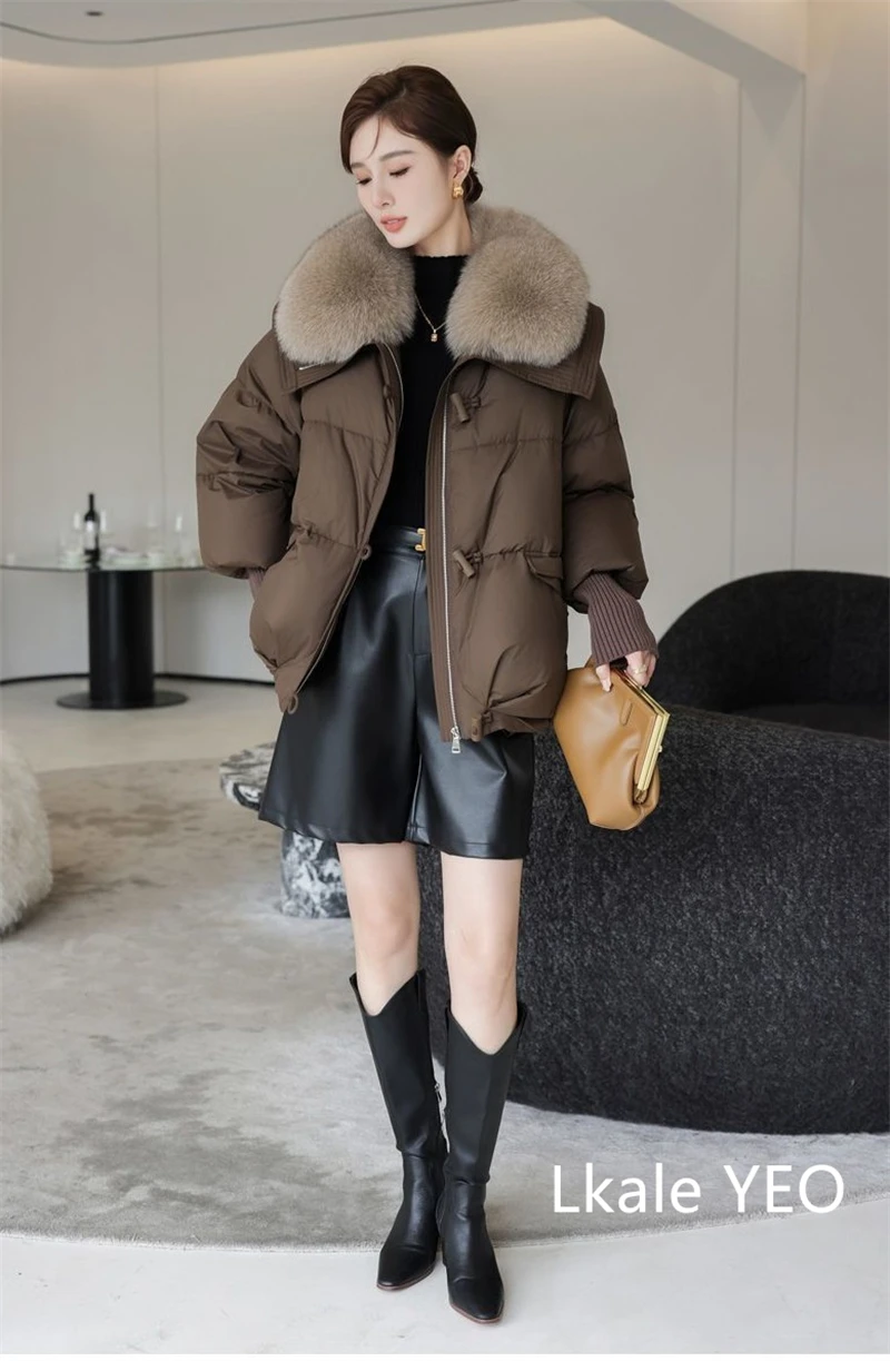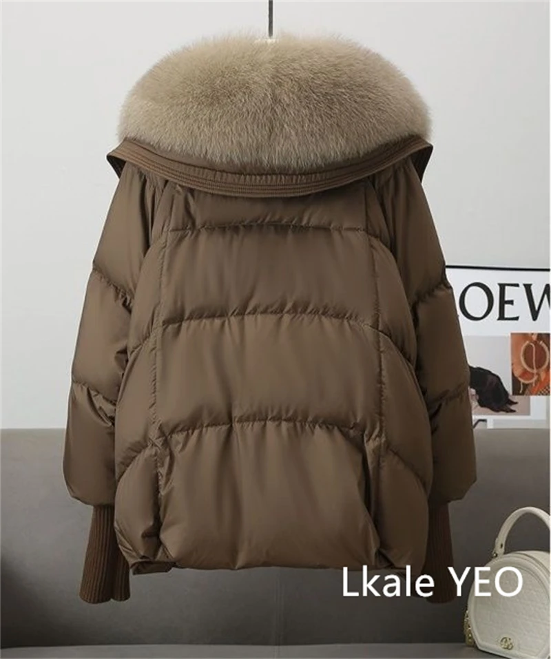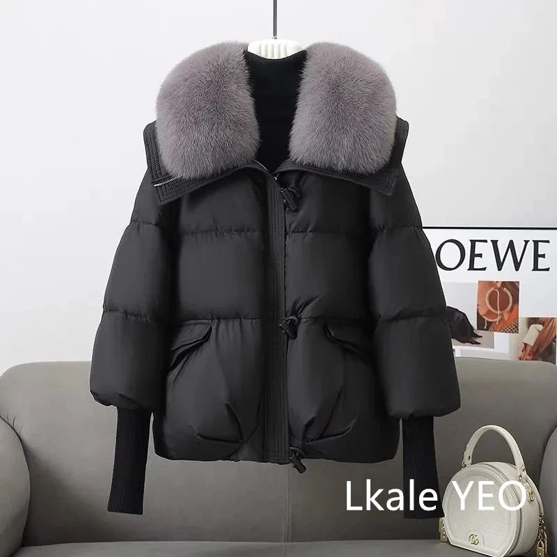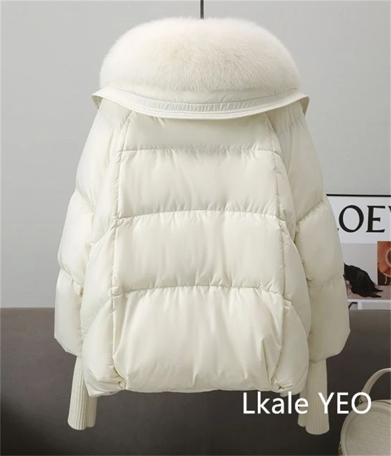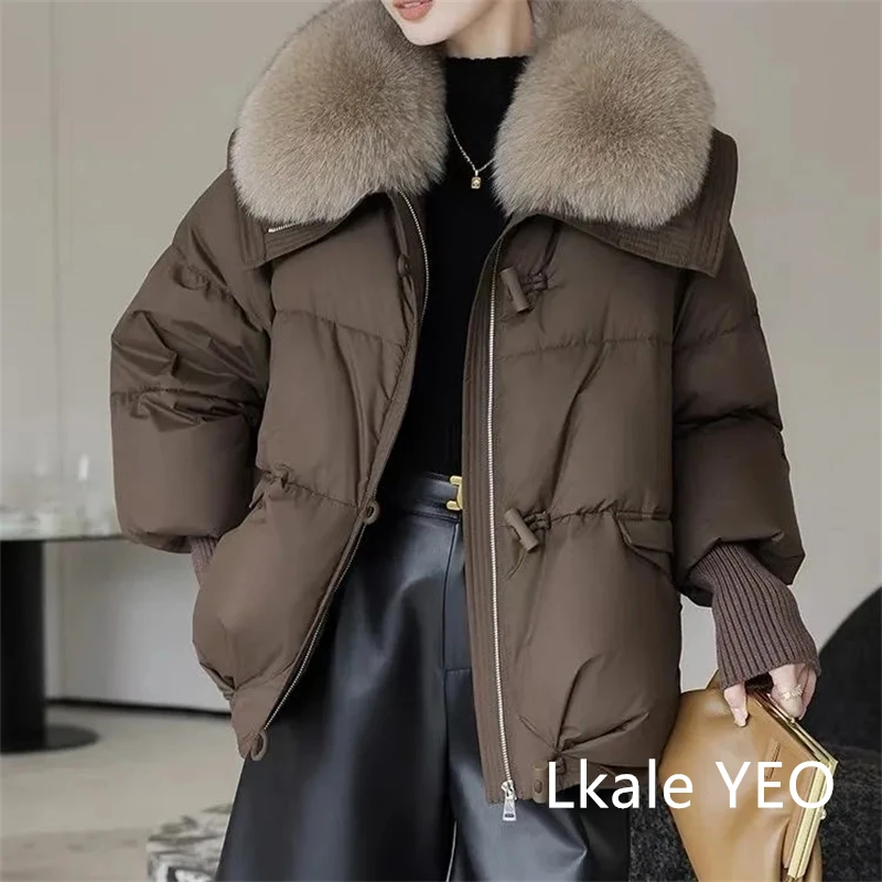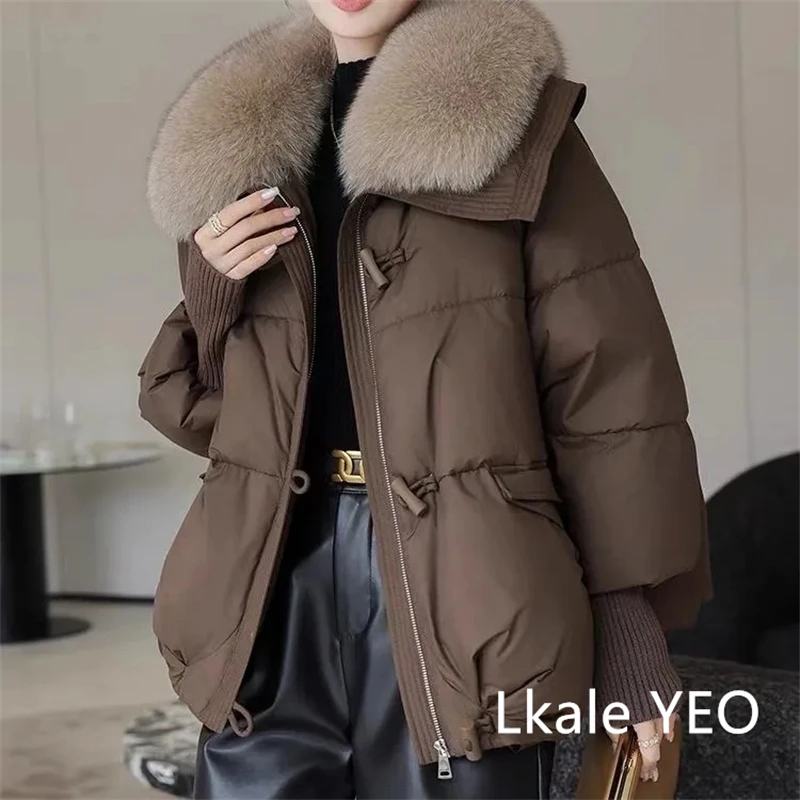 Women's Winter Parka Coat 2025 Casual Korean Version Lady Outerwear Temperament Thicken Big Fur Collar Ladies Down Cotton Jacket