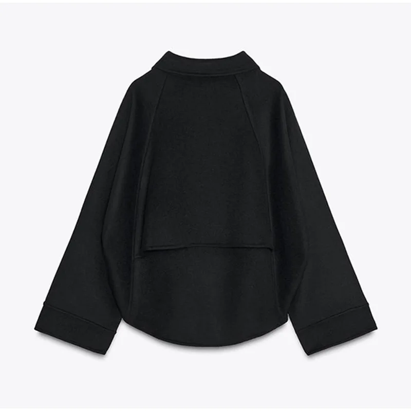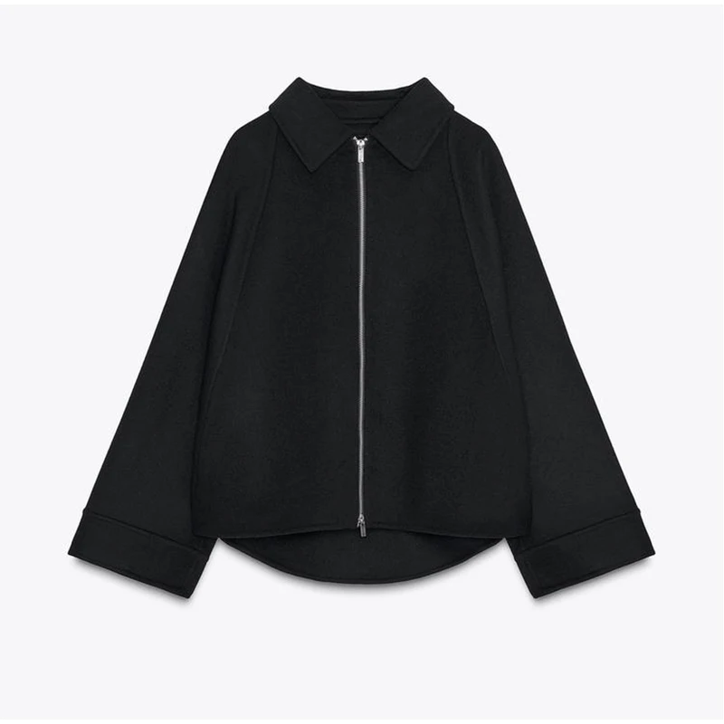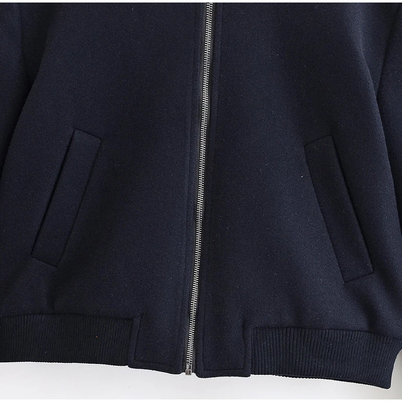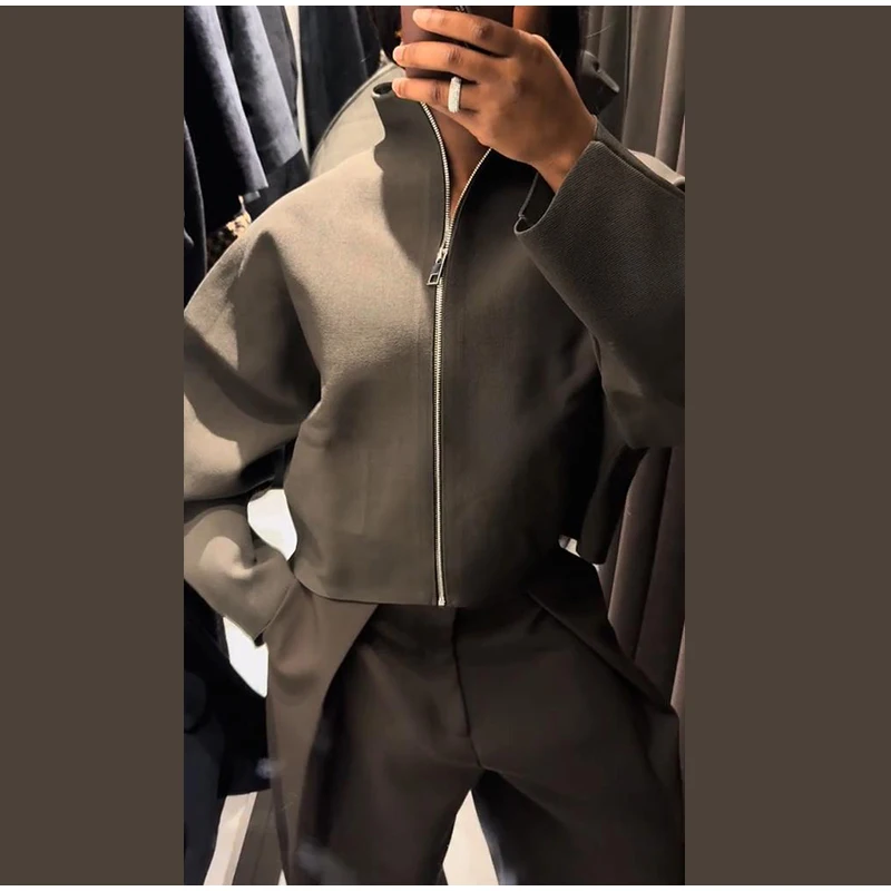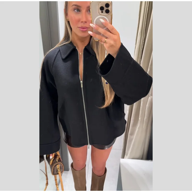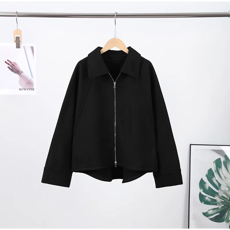 Woolen Zipper Loose Short Jacket Women Long Sleeve Lapel Solid 2025 Autumn Winter Commute Coat Street Office Warm Ladies Outwear