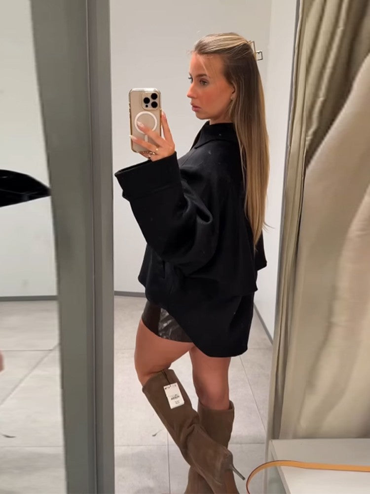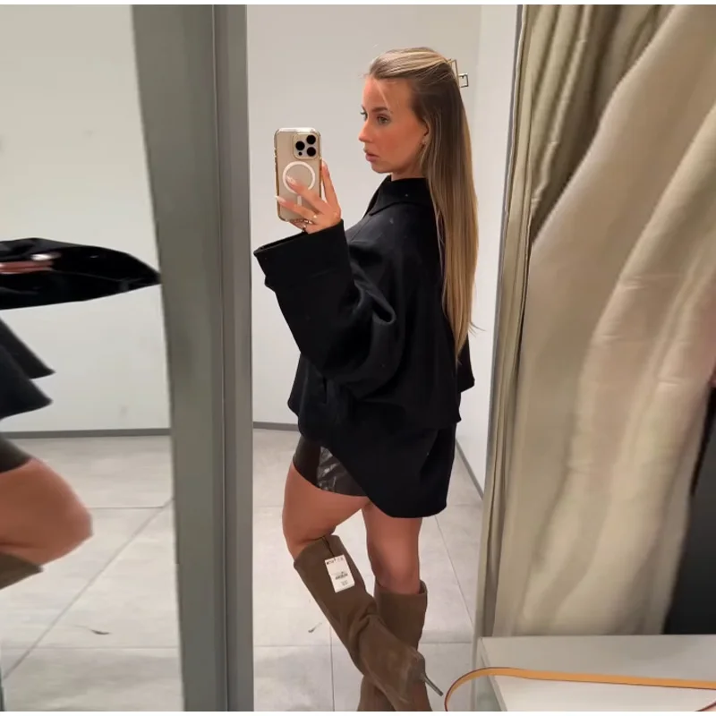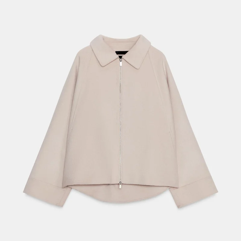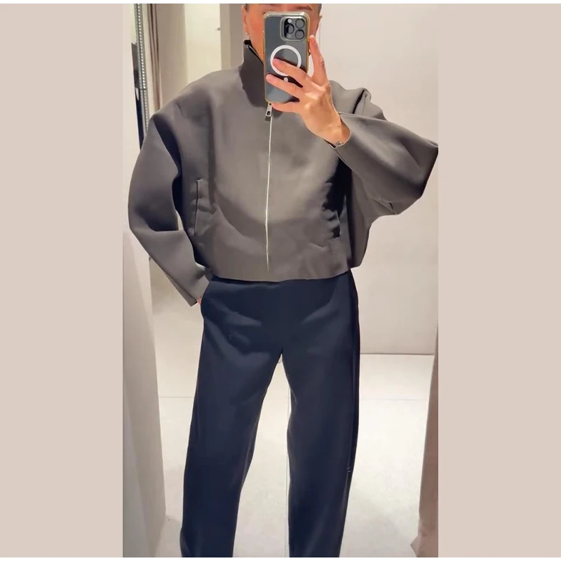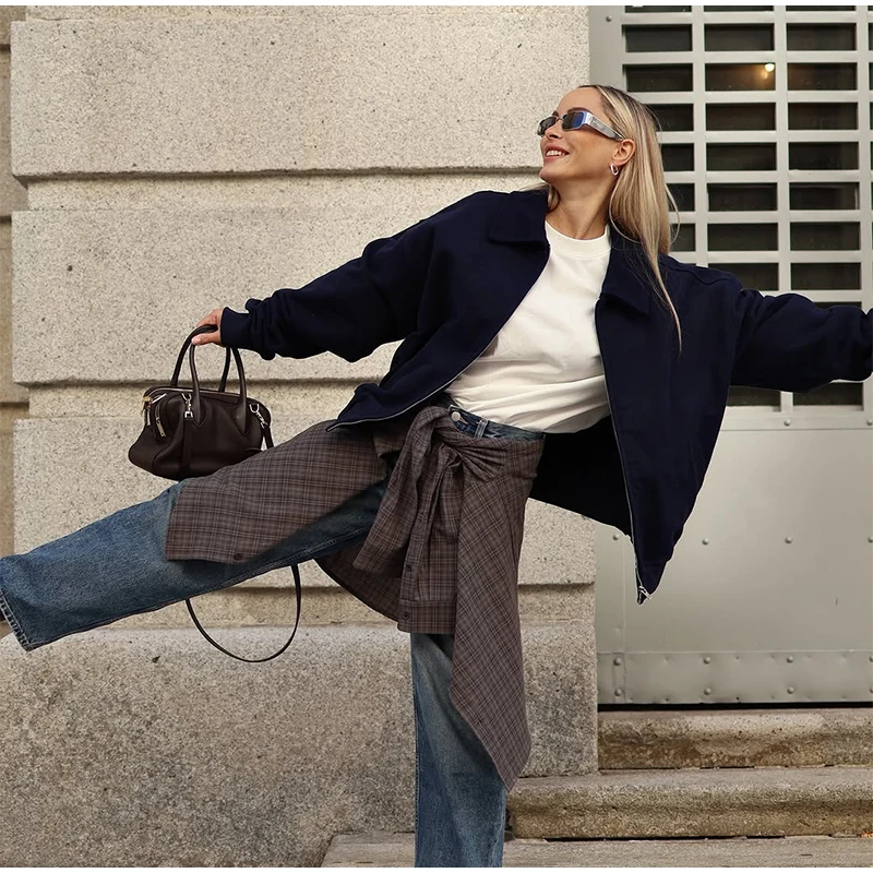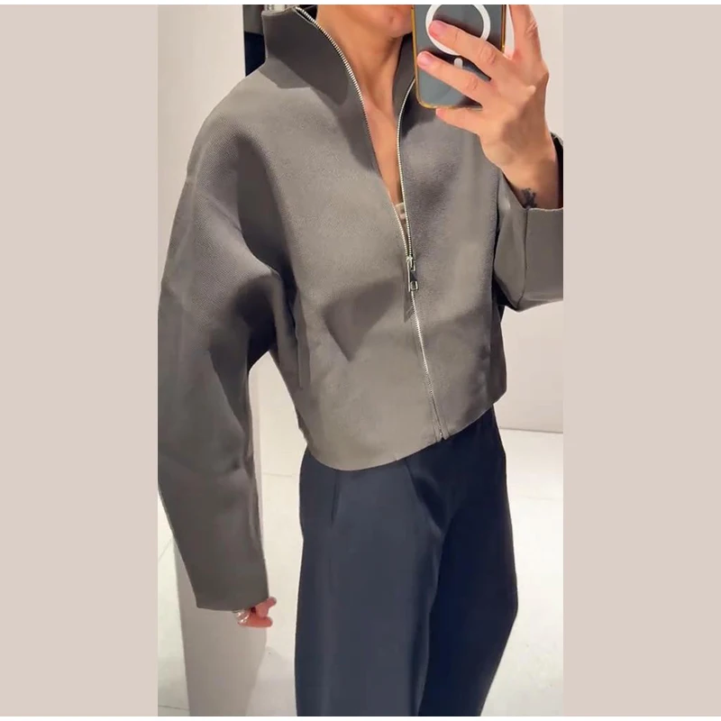 Woolen Zipper Loose Short Jacket Women Long Sleeve Lapel Solid 2025 Autumn Winter Commute Coat Street Office Warm Ladies Outwear