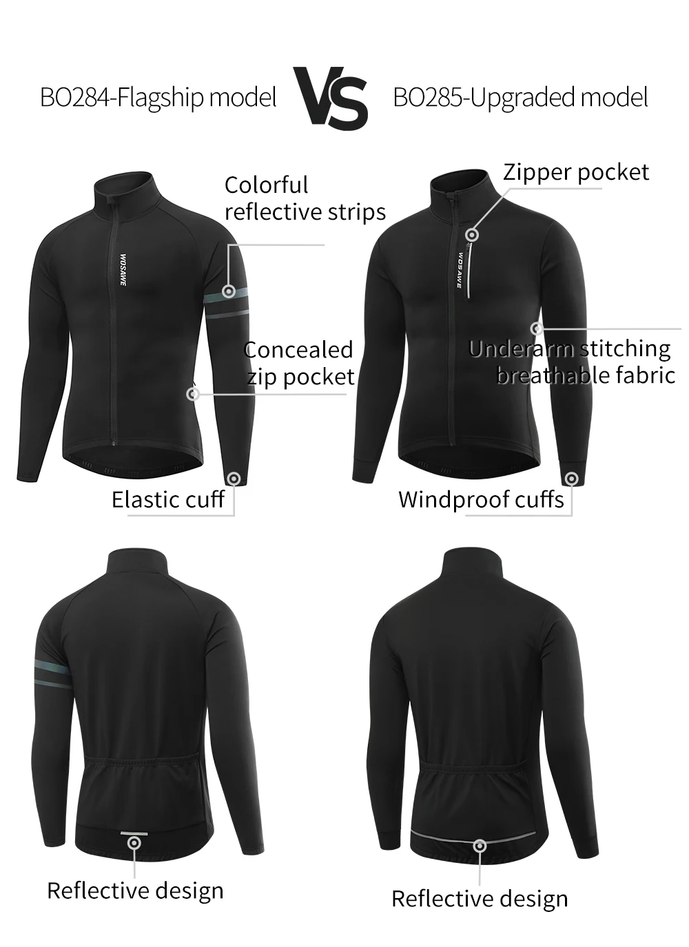 WOSAWE Winter Cycling Jacket Mens Fleece Warm Long Sleeve Bike Jacket Thermal Fabric MTB Bicycle Jersey Long Jersey