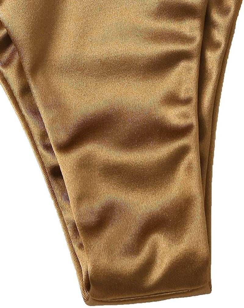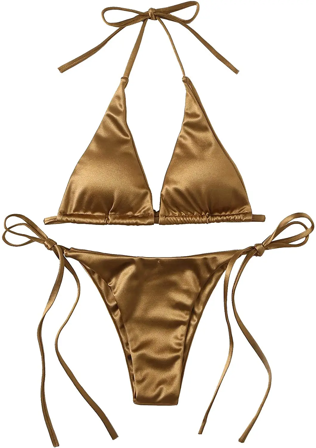 Wrap Around Halter Metallic Satin Bikini Women Swimwear Female Swimsuit Two-pieces Bikini Set Brazilian Bathing Suit Swim Lady