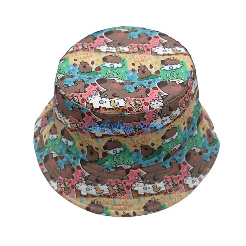 X7XE Trendy Capybara Pattern Fisherman Hat Beach Vacation Bucket Sunshade Hat for Animal Lover and Trendsetters