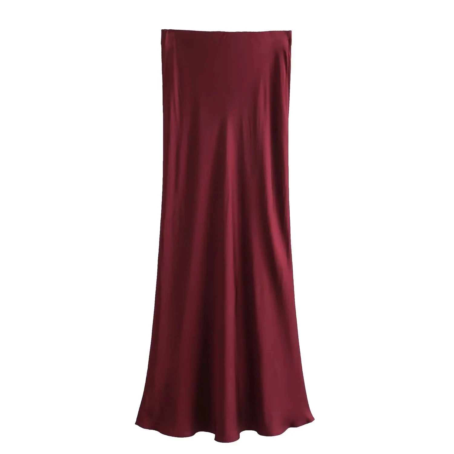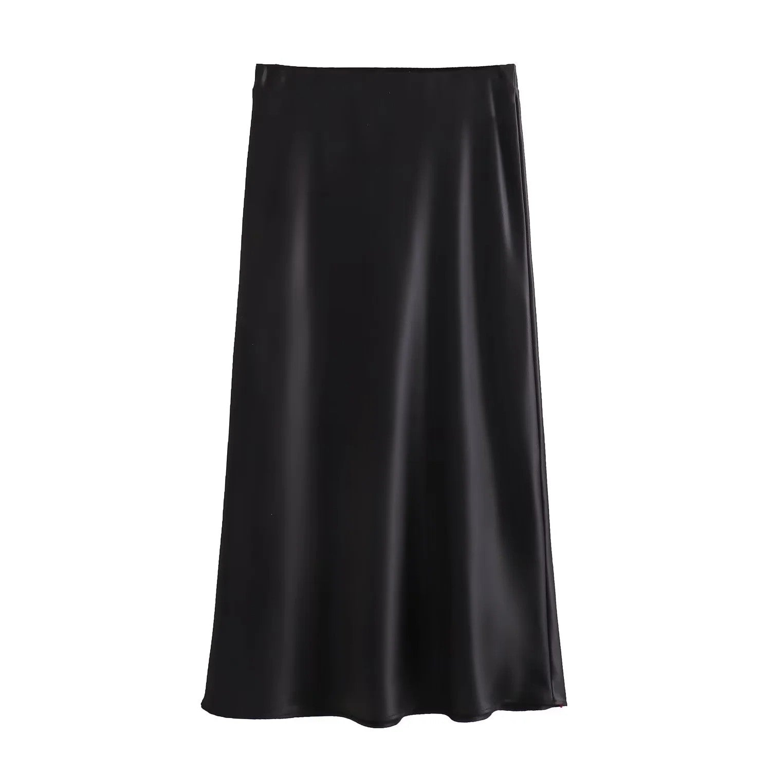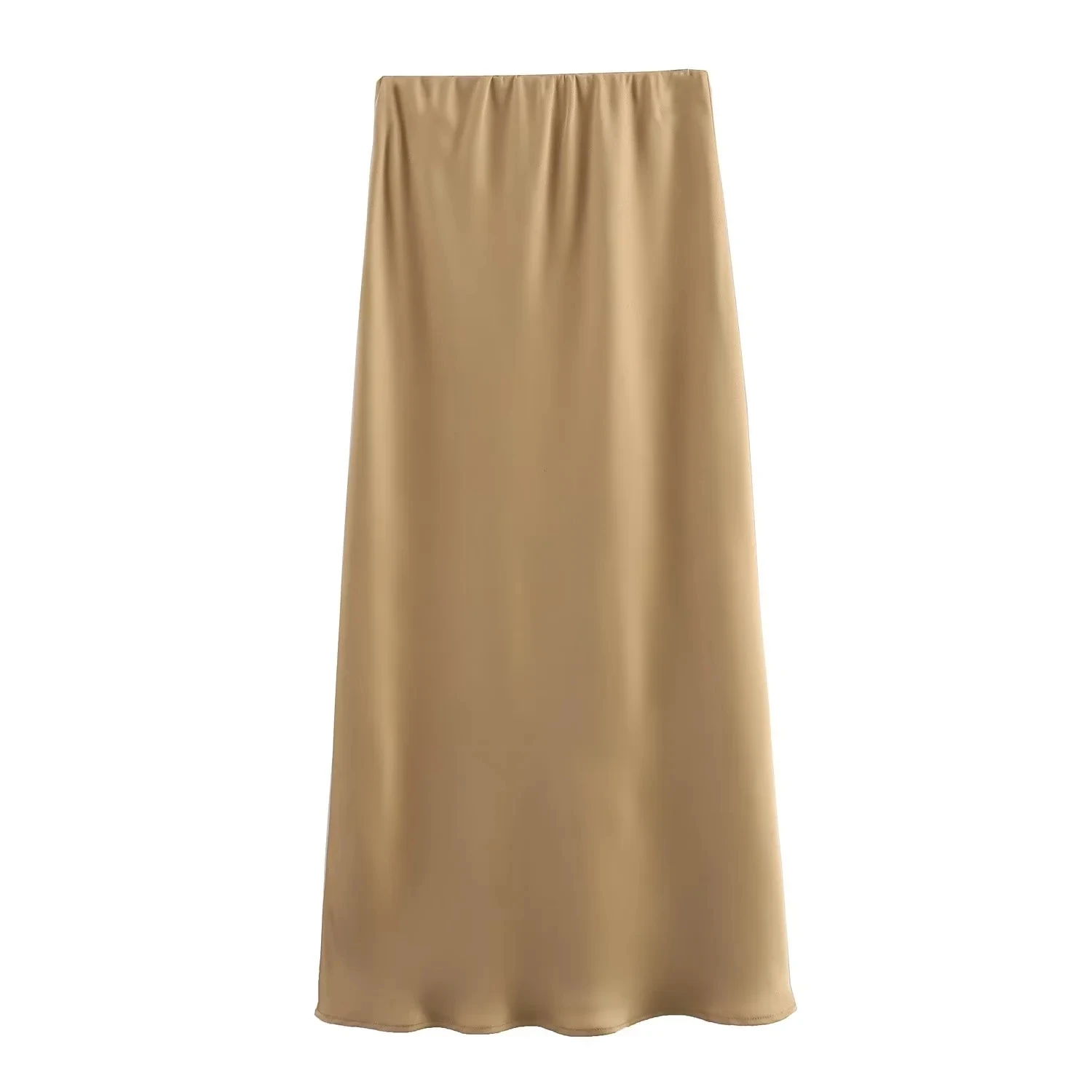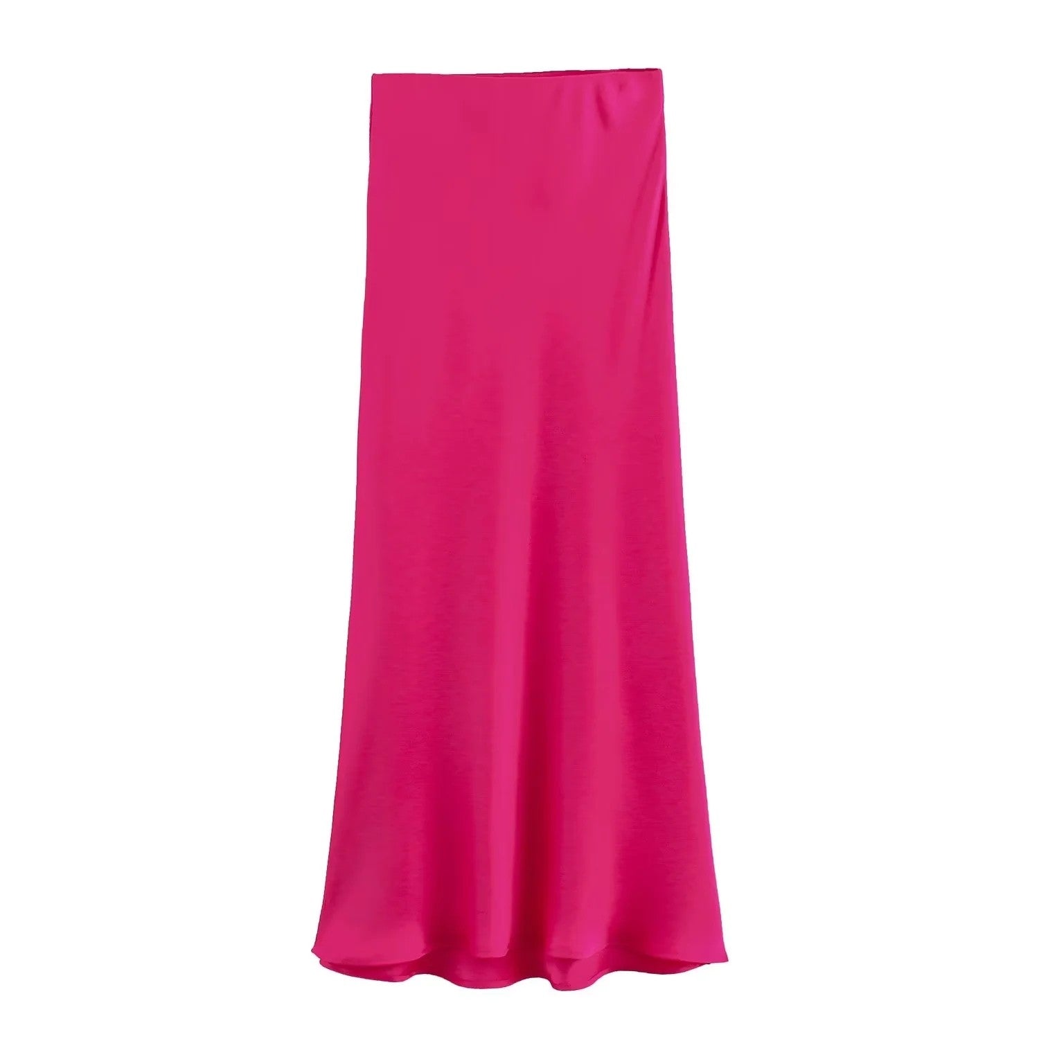XNWMNZ Women's Fashion 2023 Flowing Satin Midi Skirt Women Vintage Elastic High