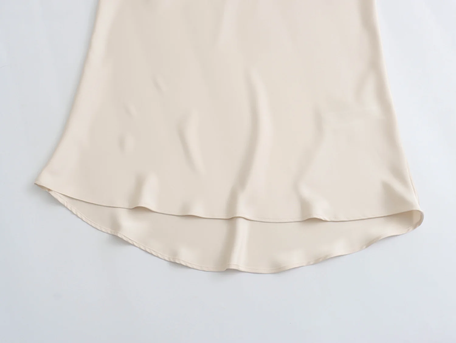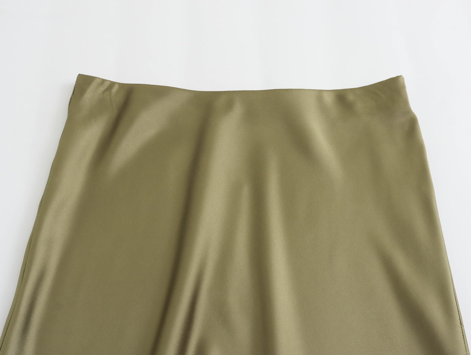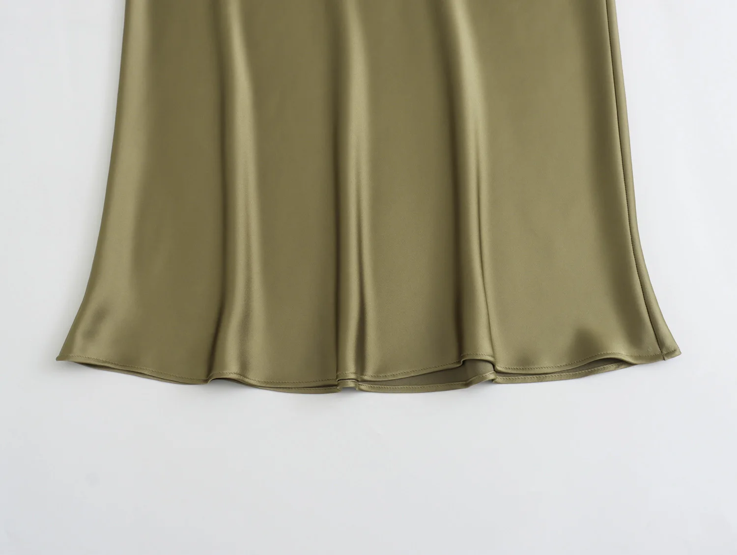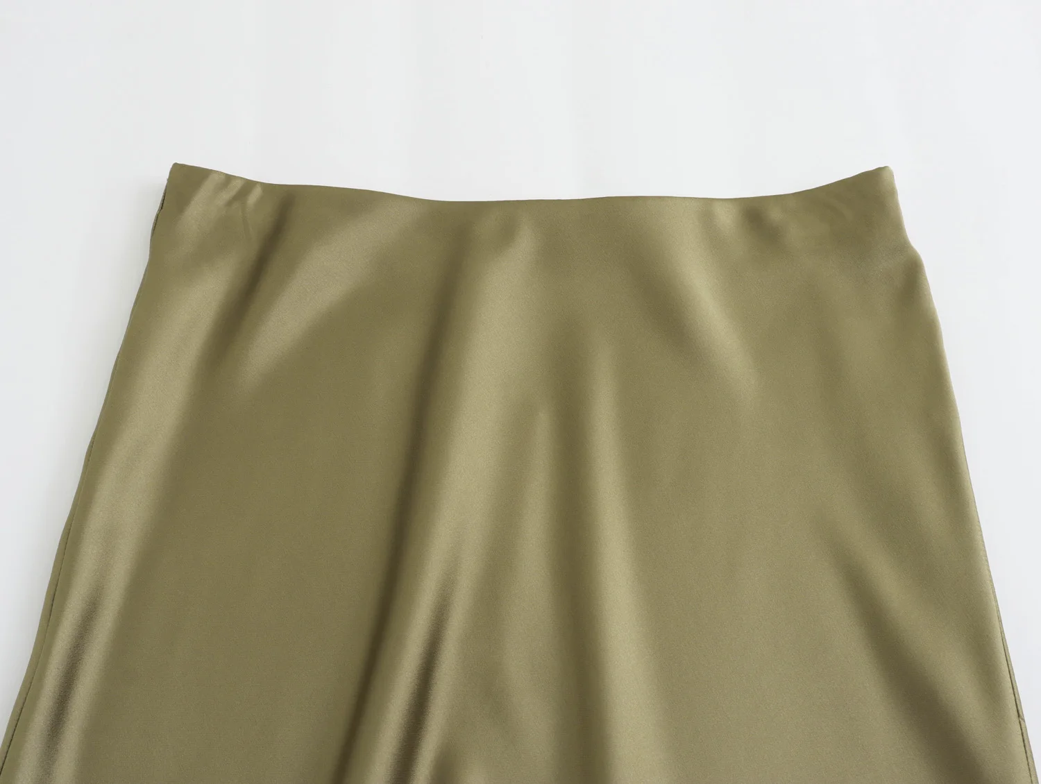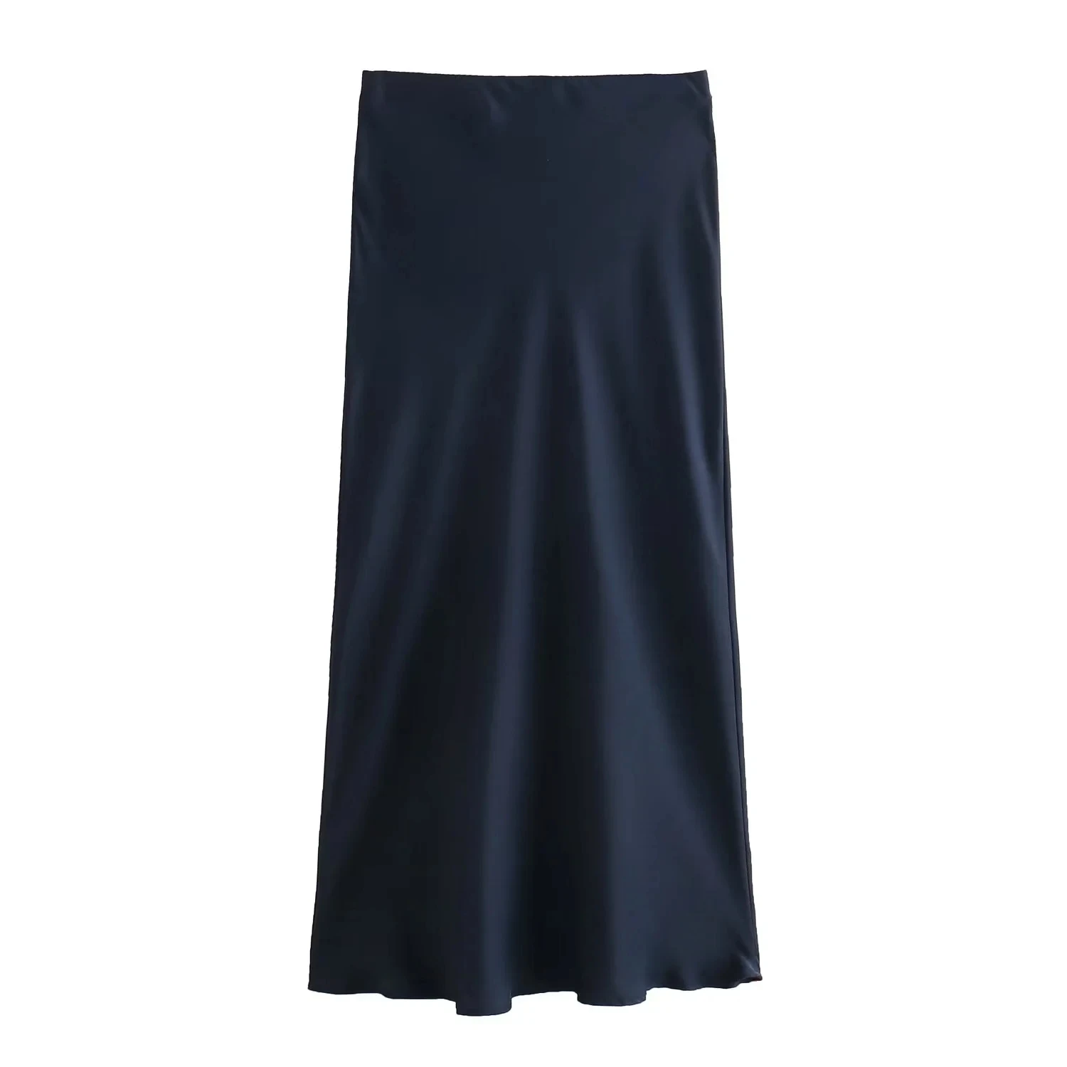 XNWMNZ Women's Fashion 2023 Flowing Satin Midi Skirt Women Vintage Elastic High