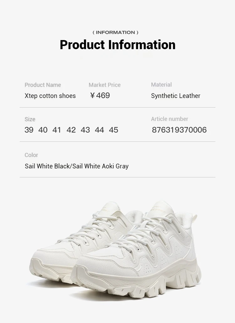 Xtep Chuanxing lite Cotton Shoes For Men 2024 Autumn Comfortable Casual Shoes Trendy Retro Soft Sneakers 876319370006