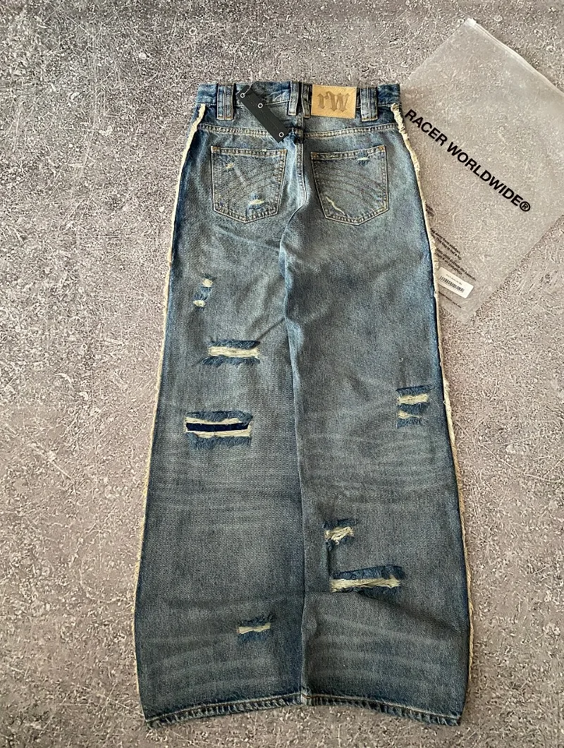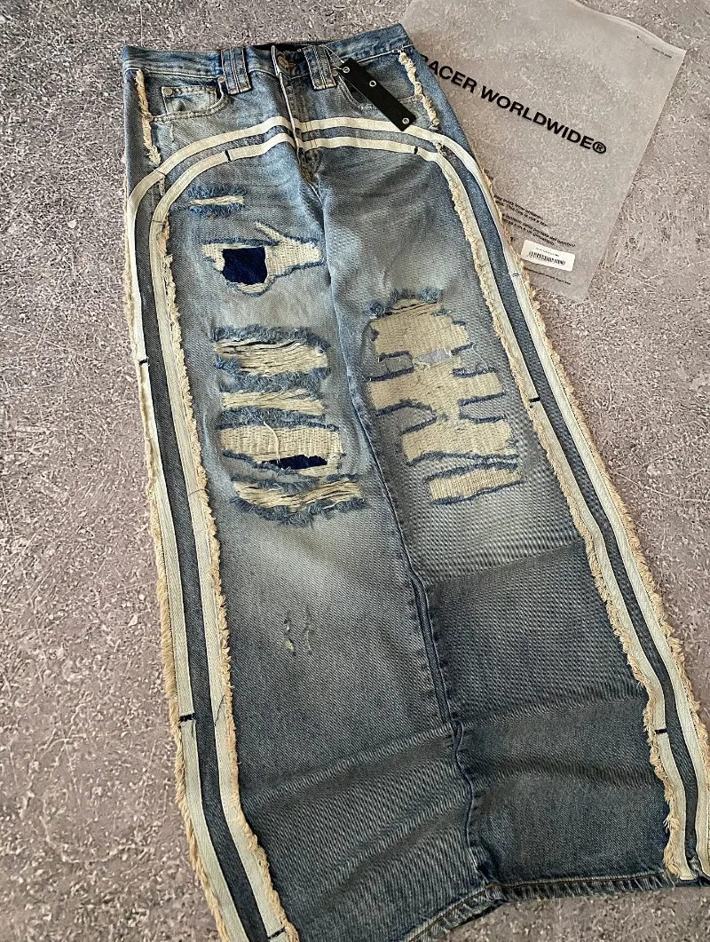 Y2K American New Pattern Embroidery Wash Baggy Jeans Men High Street Vintage Hip Hop Fashion Casual Joker Couple Wide-leg Pants