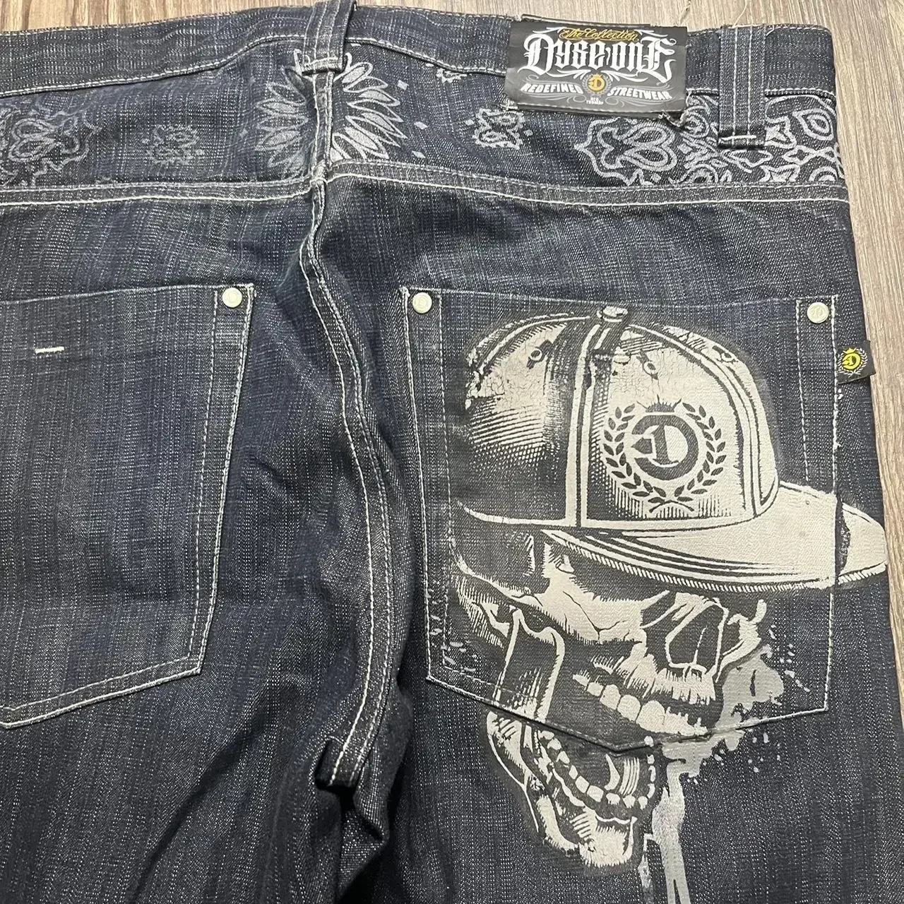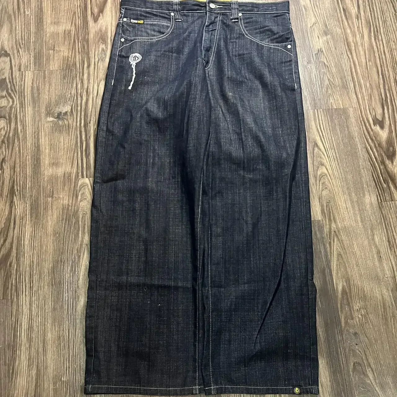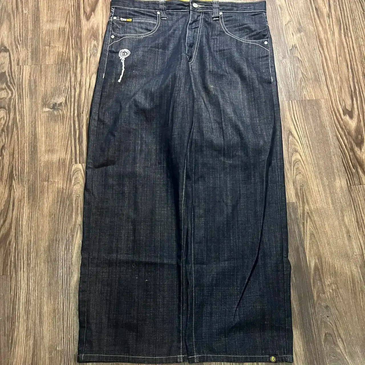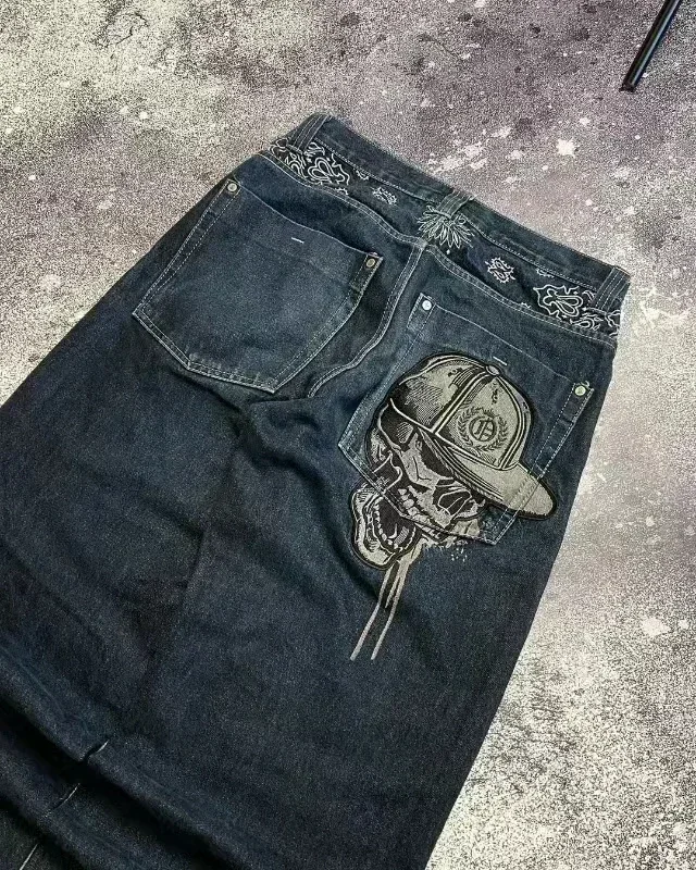 Y2K American New Trend Hip-hop Gothic Embroidered Jeans Men's Street Harajuku Leisure Loose Straight Wide-leg Pants Unisex Jeans