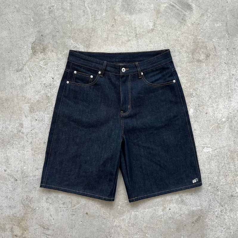 Y2K baggy denim shorts retro embroidered letter striped graphic zipper shorts men women clothing trendy hip hop streetwear