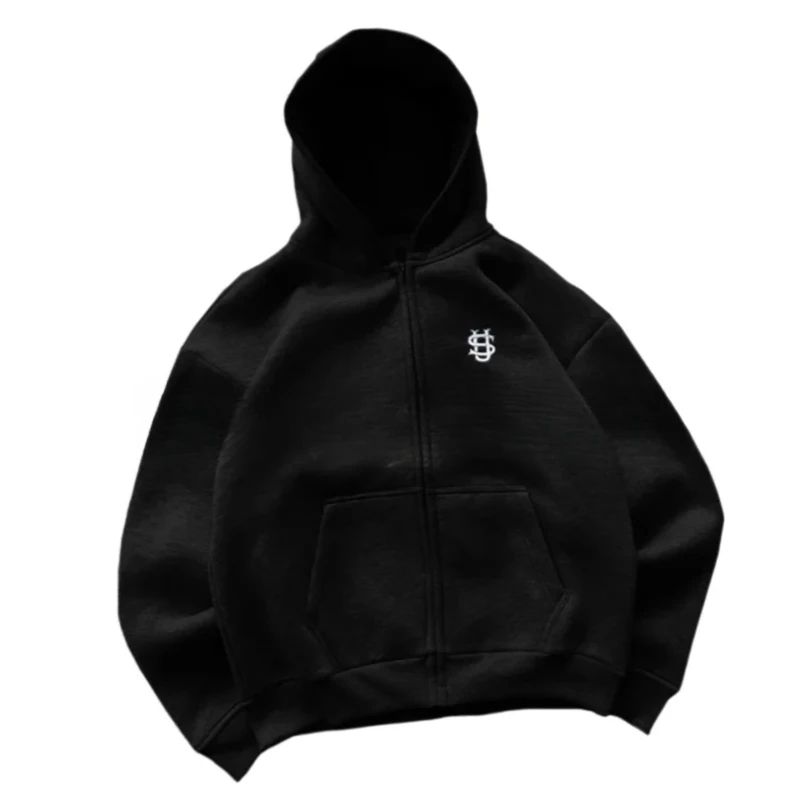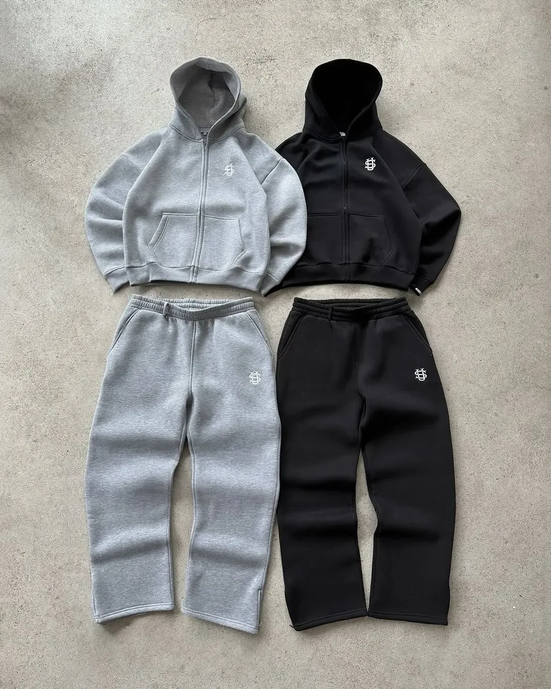Y2K Fashion Jogger Sweatpants Loose Embroidery Labeled Open Leg Wide Leg Pants Trendy Pocket Couple Straight Pants Men's Hoodie