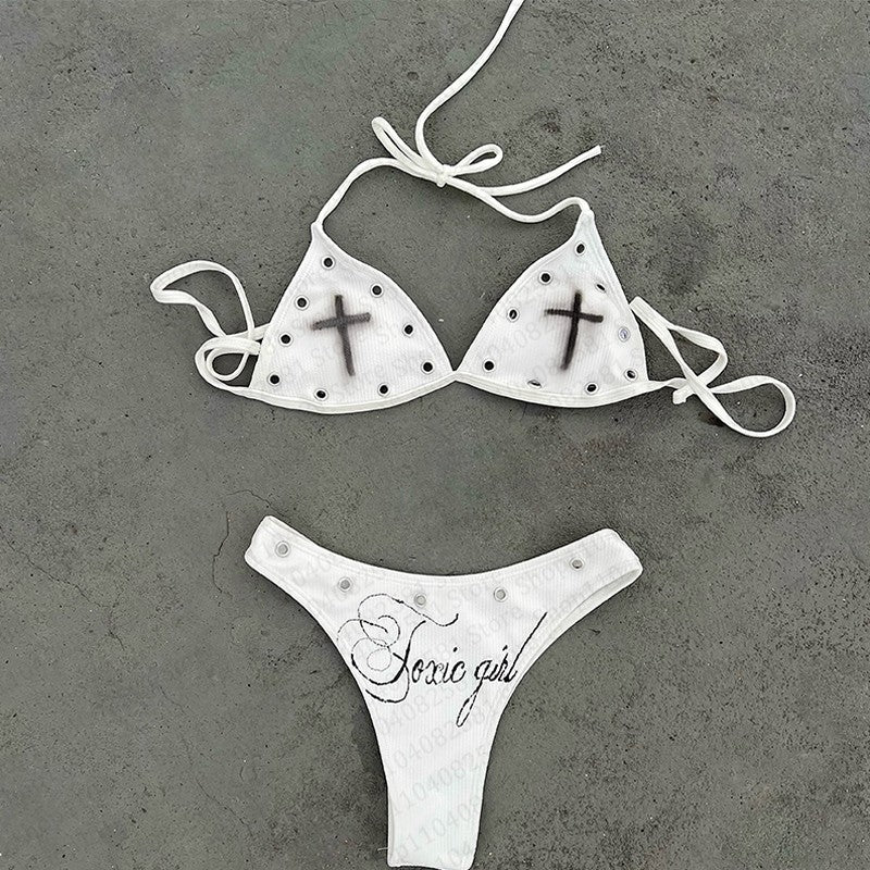Y2k Gothic tight corset from the 2000s backless sleeveless hot and spicy Emo girl crop top summer bikini set beach vest party