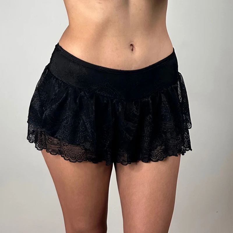 Y2k Music Club Party Booty Short Skirt Cute Lace Layered A-line Skirt Fairy Coquette Clothes Women Low Waist Mini Ruffle Skirt