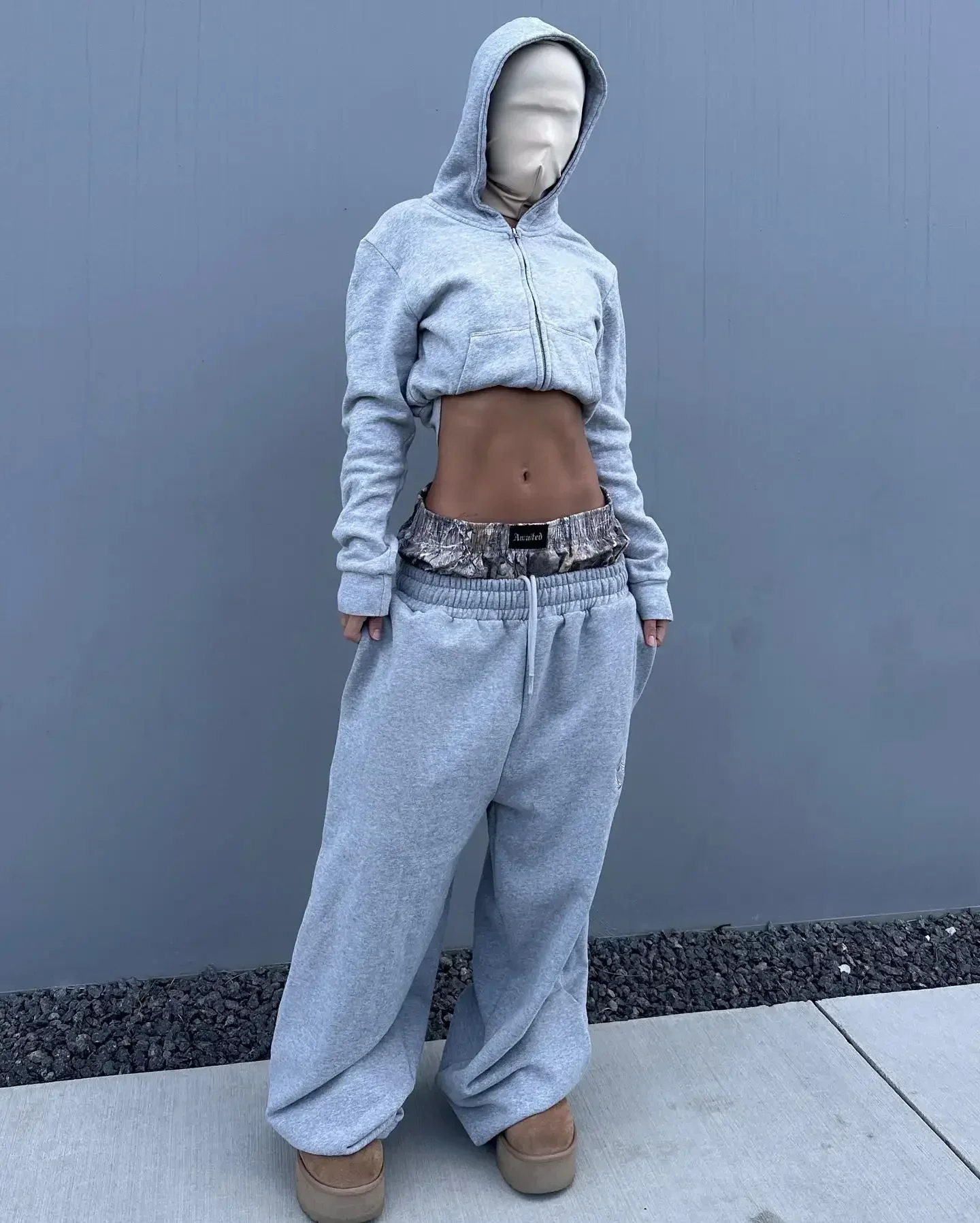 Y2K pants vintage Harajuku double Embroidered waist Sweatpants Men Wome Hip Hop Casual High waisted Wide Leg Pants Streetwear