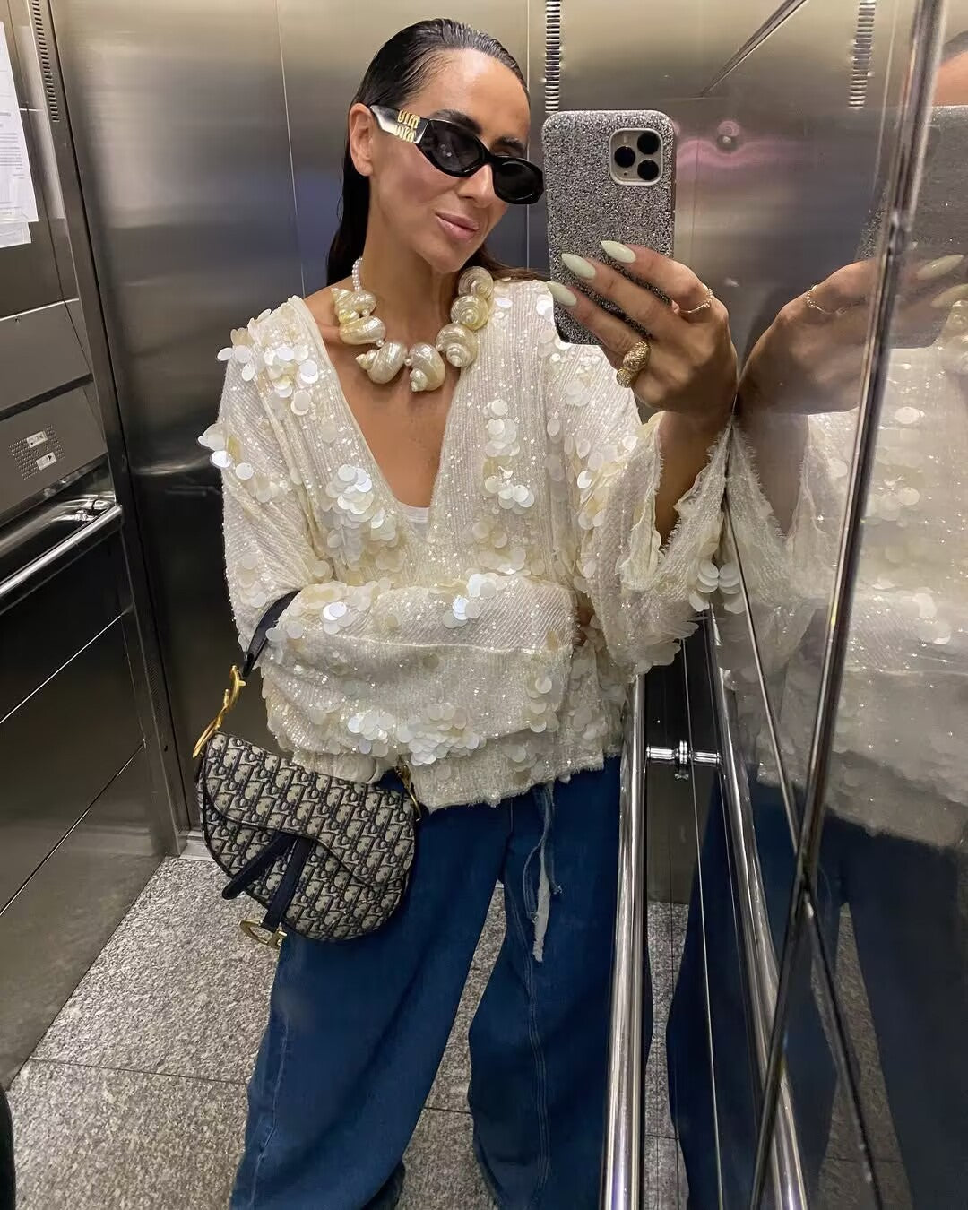 YENKYE New Autumn Women Sequin Kimono Jacket Coat Long Sleeve V Neck Female Casual Loose Outerwear Chic Lady Wrap Outfits