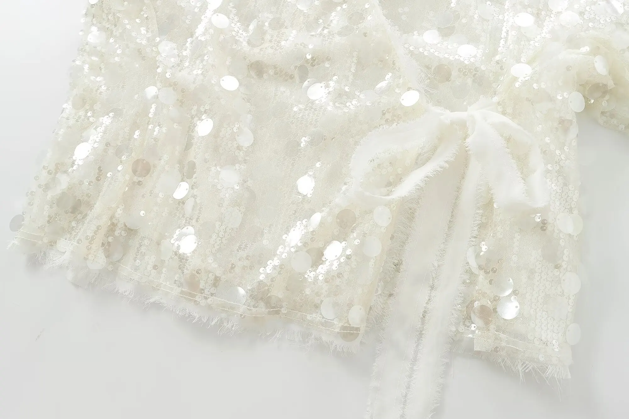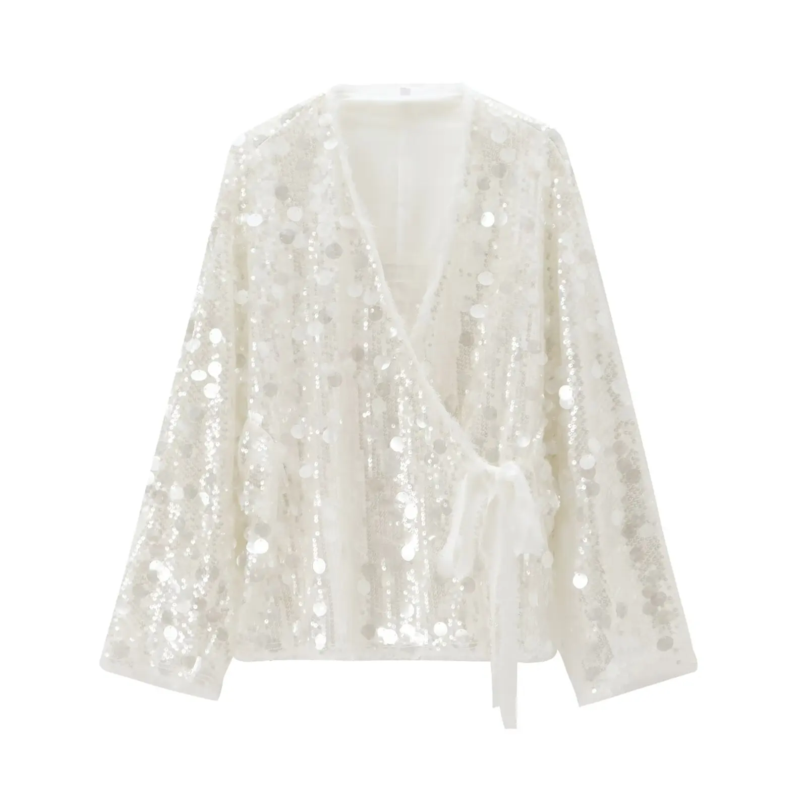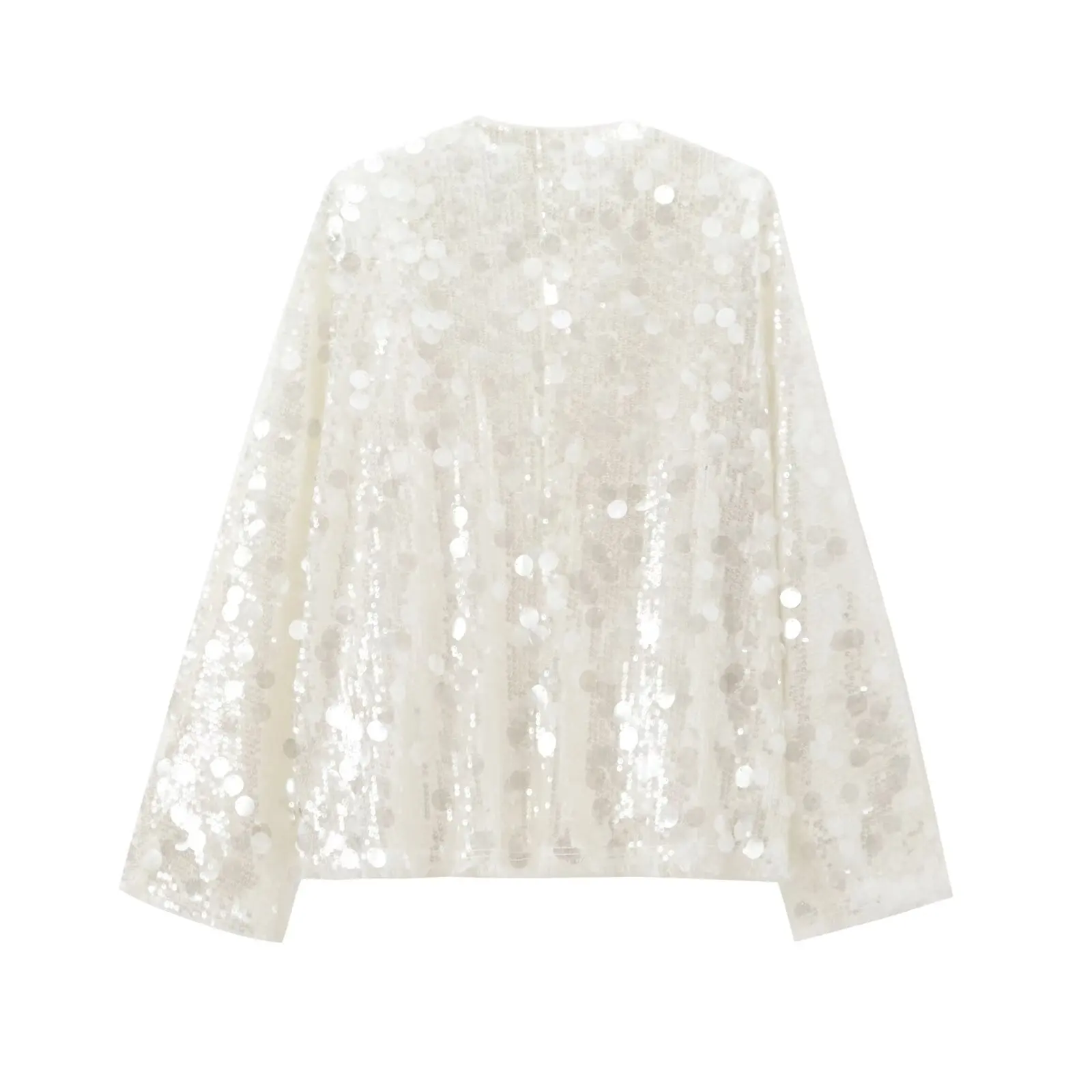 New Autumn Women Sequin Kimono Jacket Coat Long Sleeve V Neck Female Casual