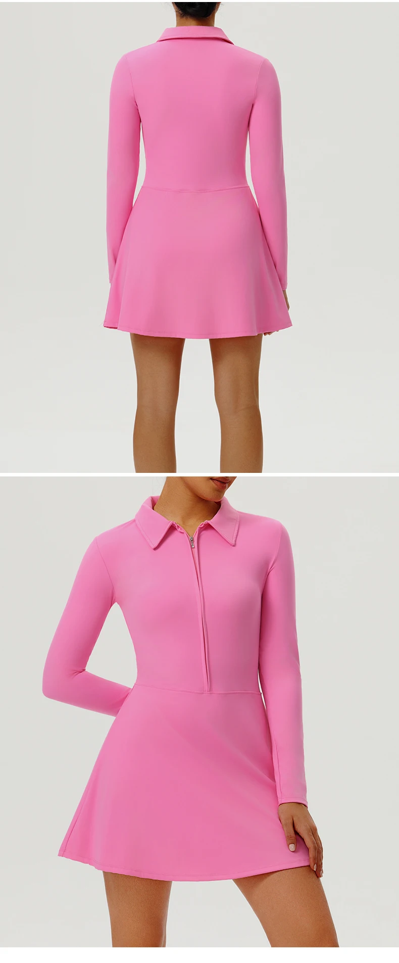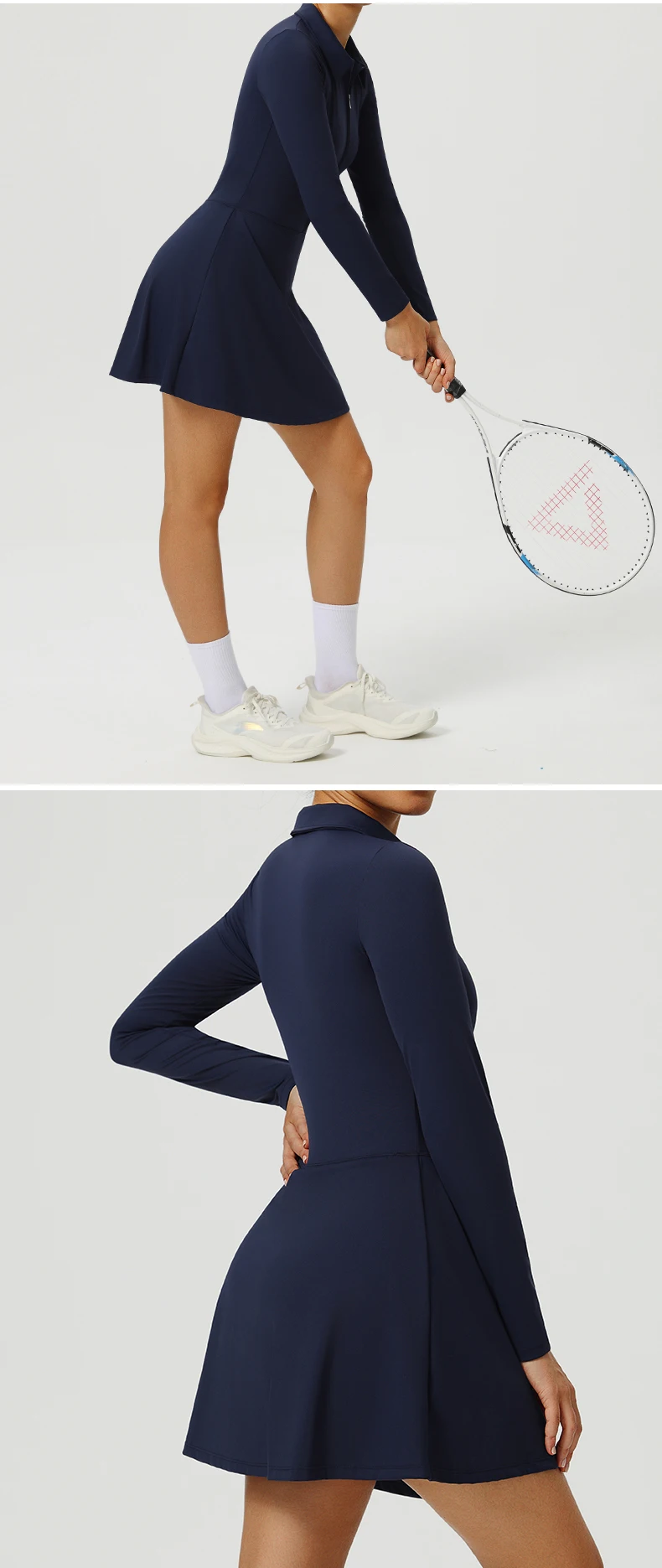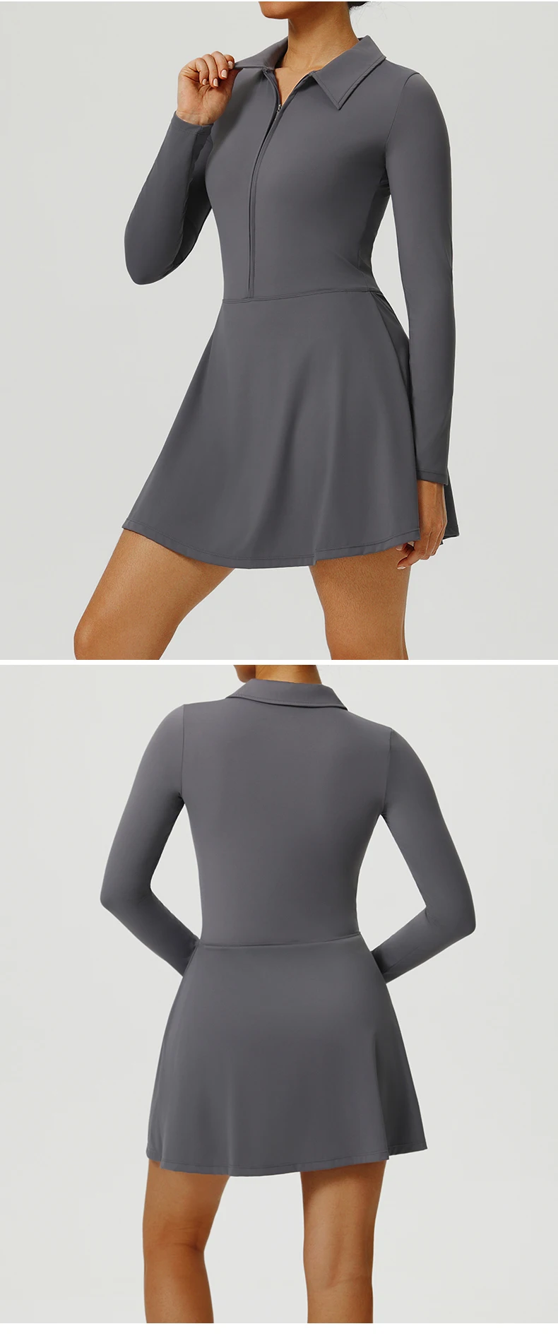 Yoga Long Sleeved Dress Women's Long Sleeved Zipper Skirt Breathable Gym Outdoor Running Yoga Tennis Skirt Quick-Dry Tracksuits.
