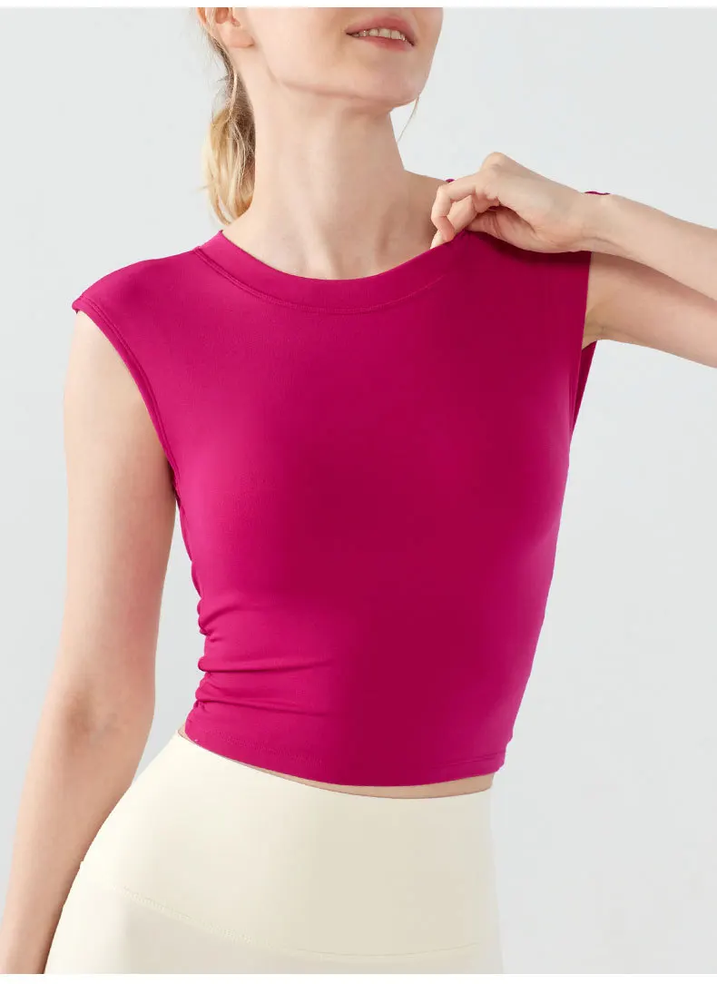 Yoga Suit Sports Top Women with Chest Pad Sexy Short-sleeved T-shirt Running Beauty Back Pilates Training Fitness Clothes Summer