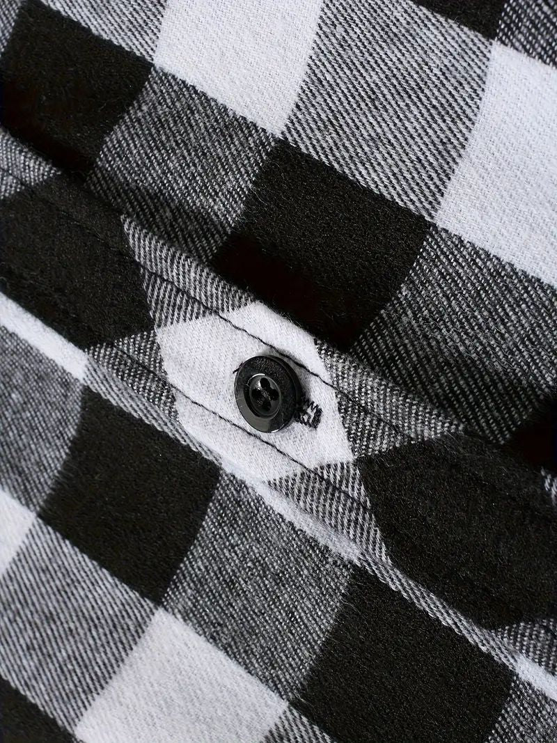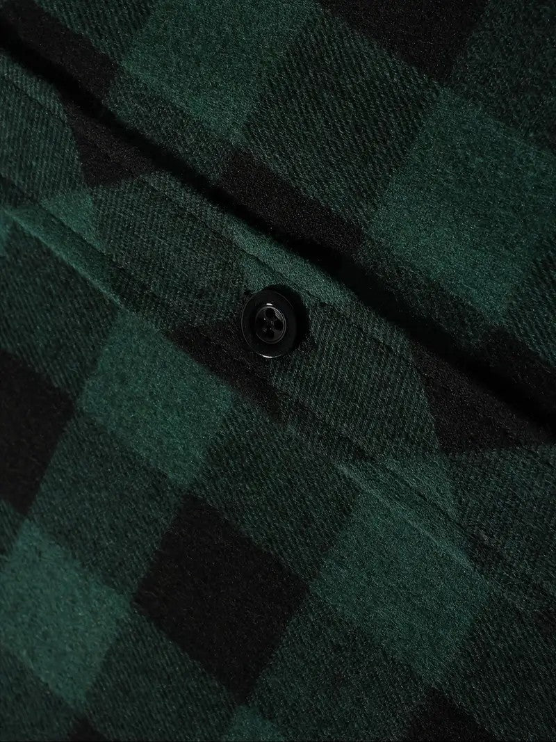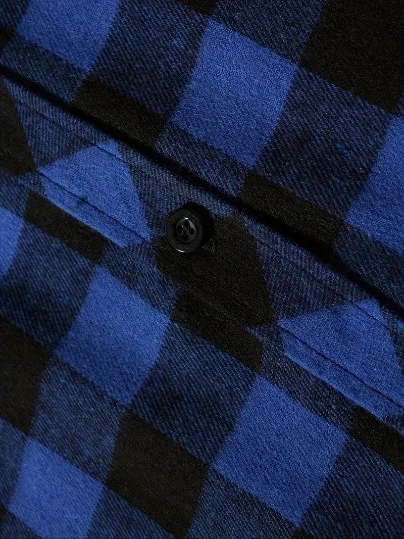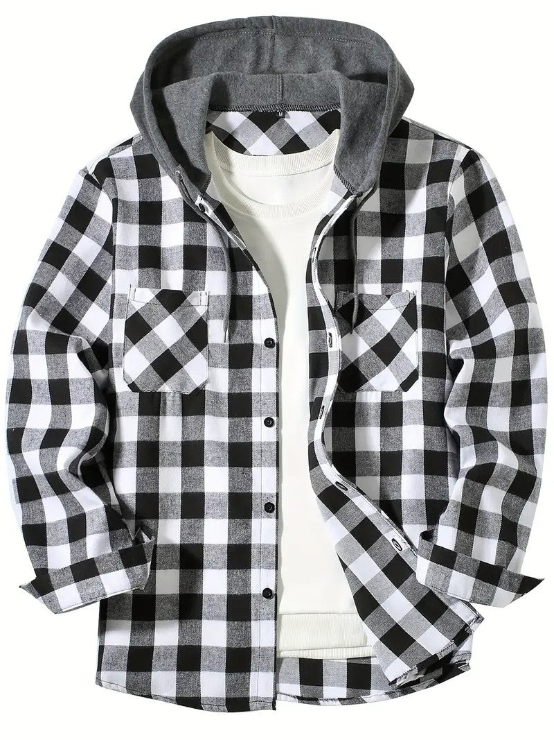 Youth Fashion Street Hooded Plaid Shirt Men's Slim Fit Long Sleeved Shirt Couple Travel Casual Shirt Men's Sports Shirt Jacket
