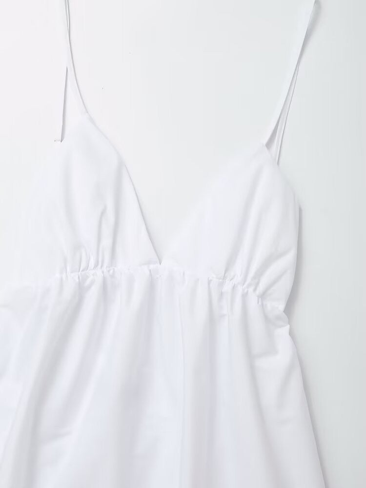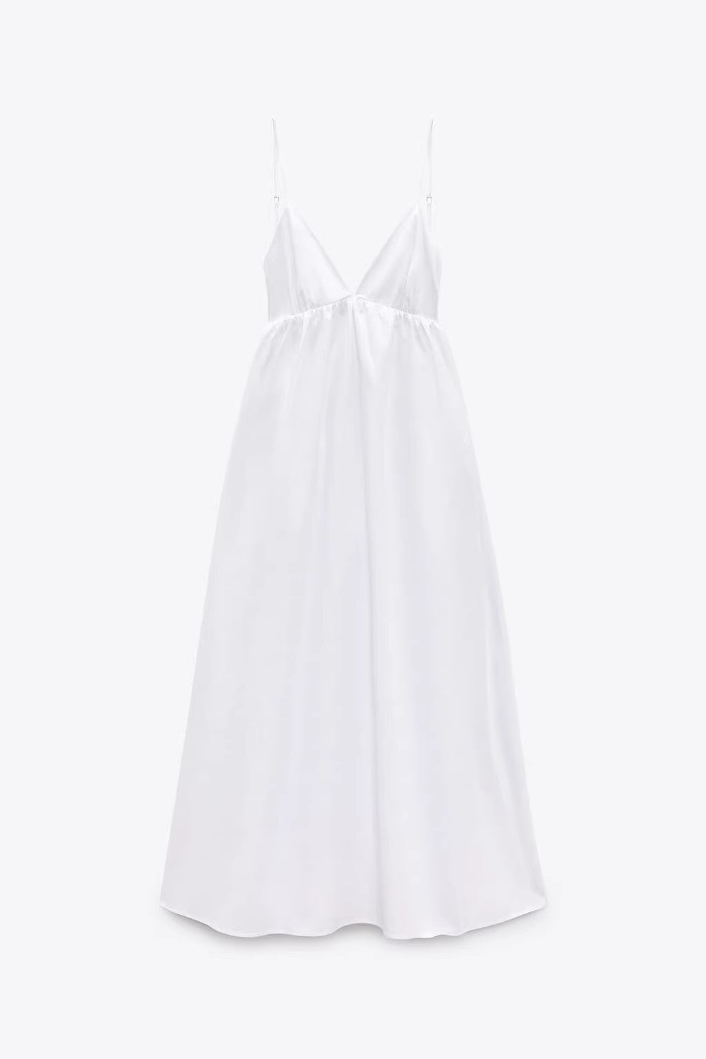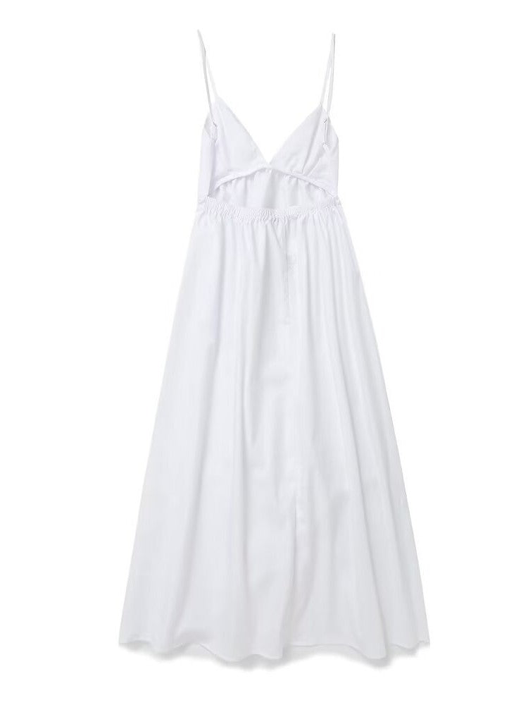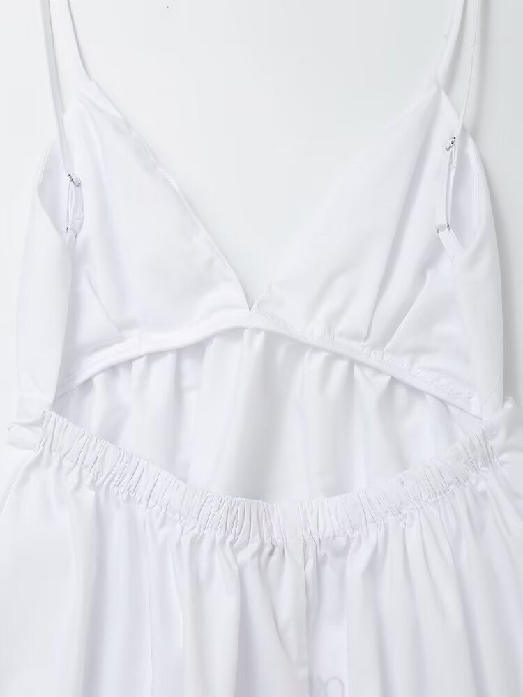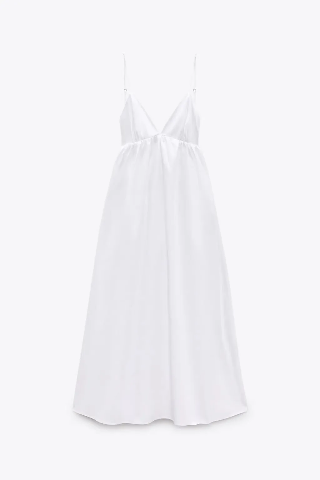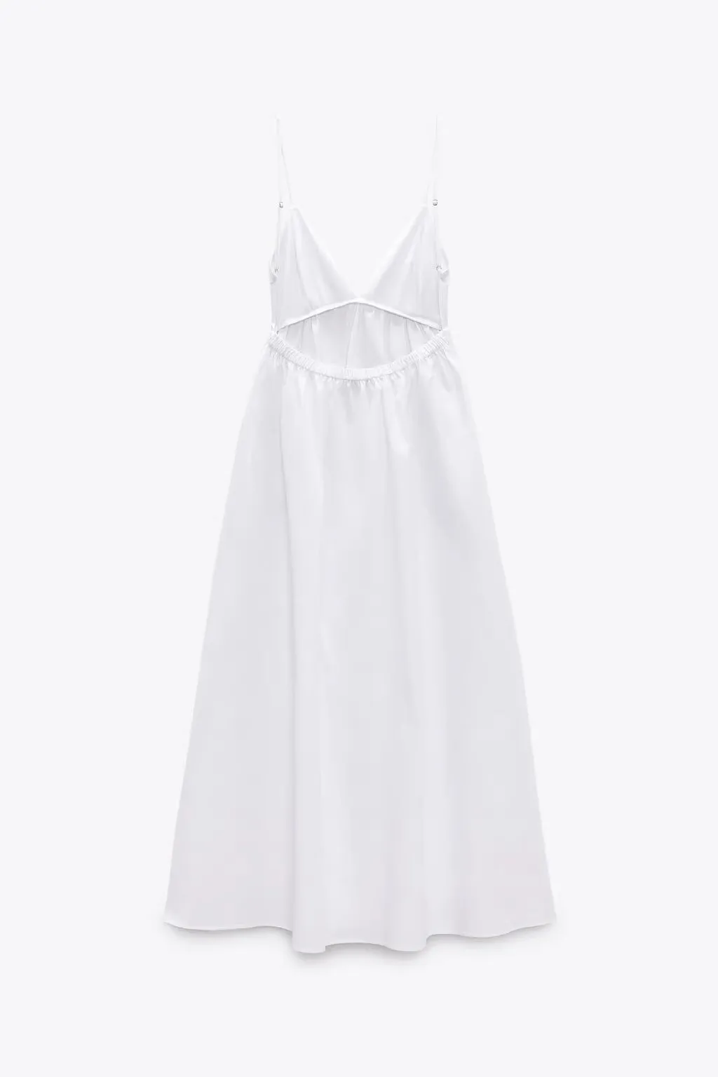 ZBZA Women's Backless Midi Dress Waistband V Neck Solid Pullover High Waisted Lo