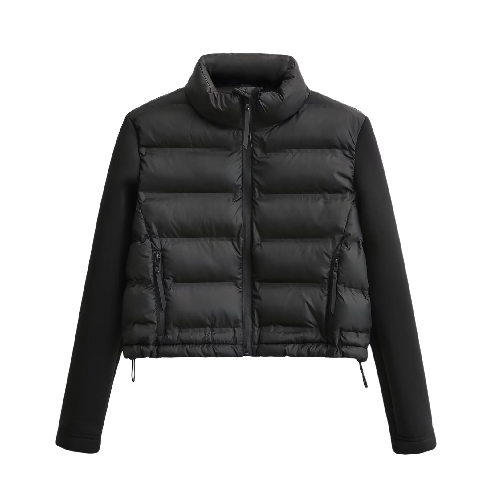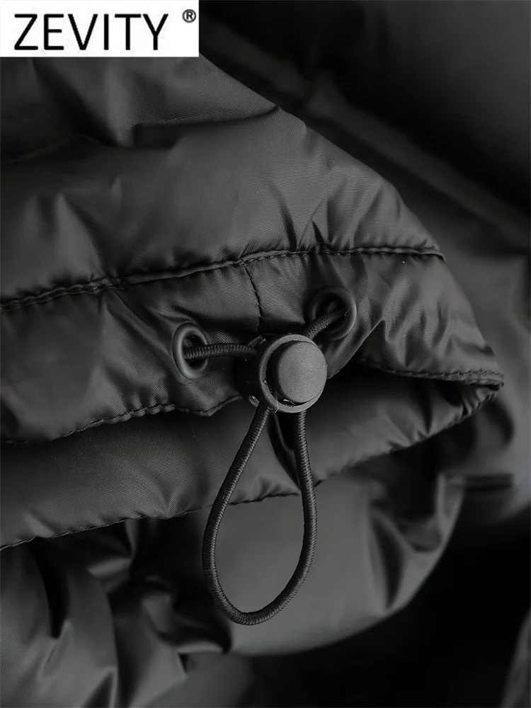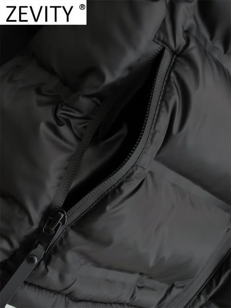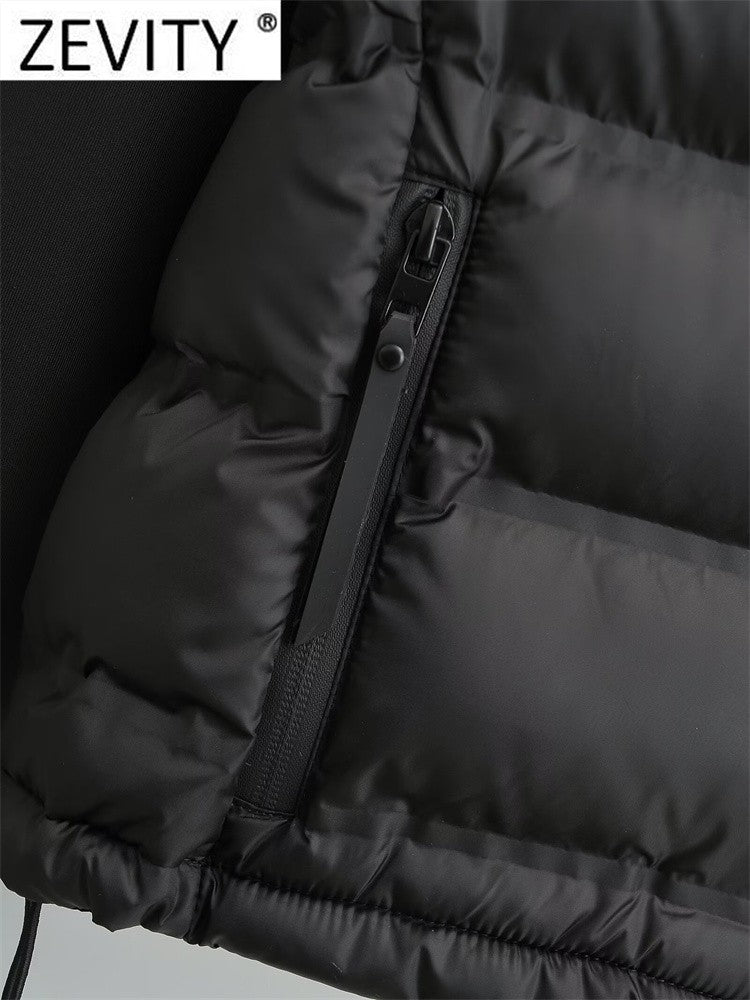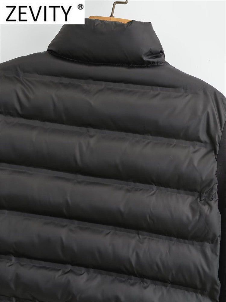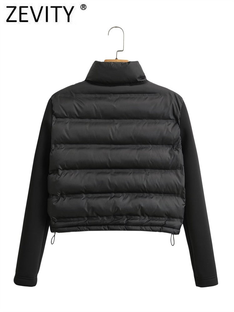 ZEVITY Women Fashion Stand Collar Long Sleeve Patchwork Quilted Cotton Jacket Coat Femme Outerwear Chic Zipper Short Tops CT5817