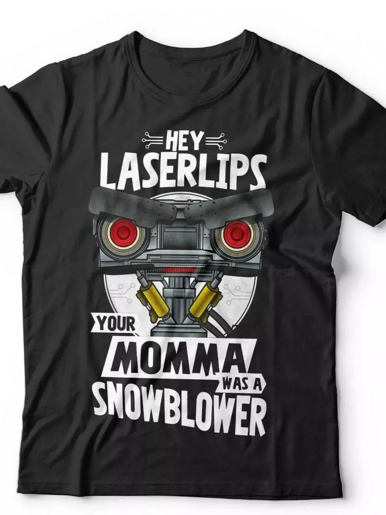 ZITY Hey Laser Lips T-Shirt Funny Short Circuit Robot Graphic with Hey Laser Lips Your Momma Was a Snowblower Slogan