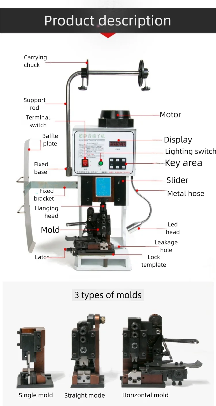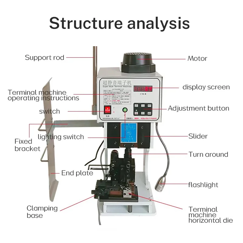 Zten 1.5T 2T Automatic Flat Cable Electric Crimper Tool Low Noise Wire Terminals Crimping Machine Multiple Connectors Support